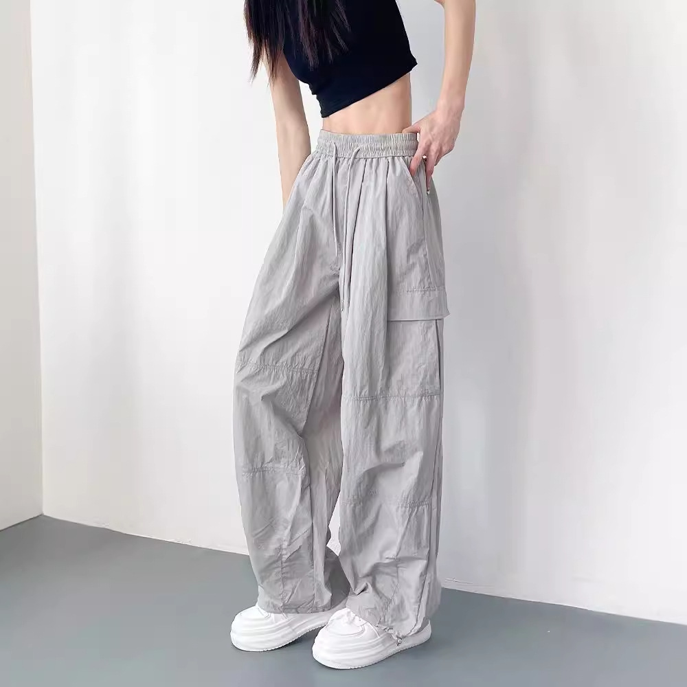 早秋灰色工装阔腿裤女夏季胖mm速干休闲裤大码宽松显瘦运动直筒裤