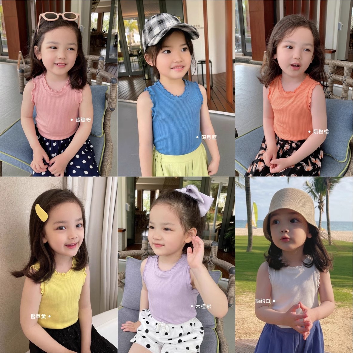 夏季女童短袖T恤韩版女宝宝纯色百搭修身上衣甜美木耳边无袖背心