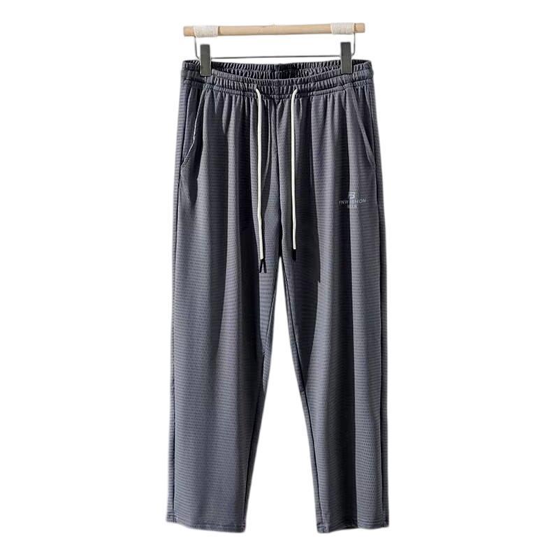 夏季新款微弹宽松运动休闲裤子男生时尚潮牌风冰丝网眼速干长裤子