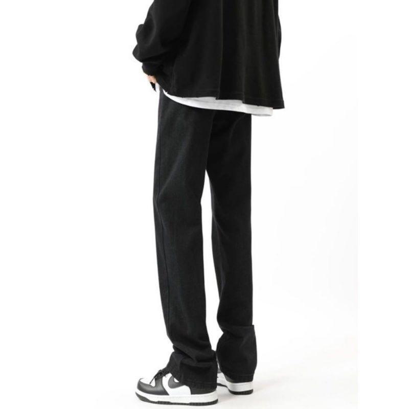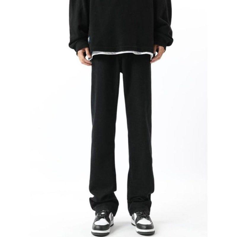 美式vibe裤子男款高街微喇黑色牛仔裤新款修身直筒休闲长裤子