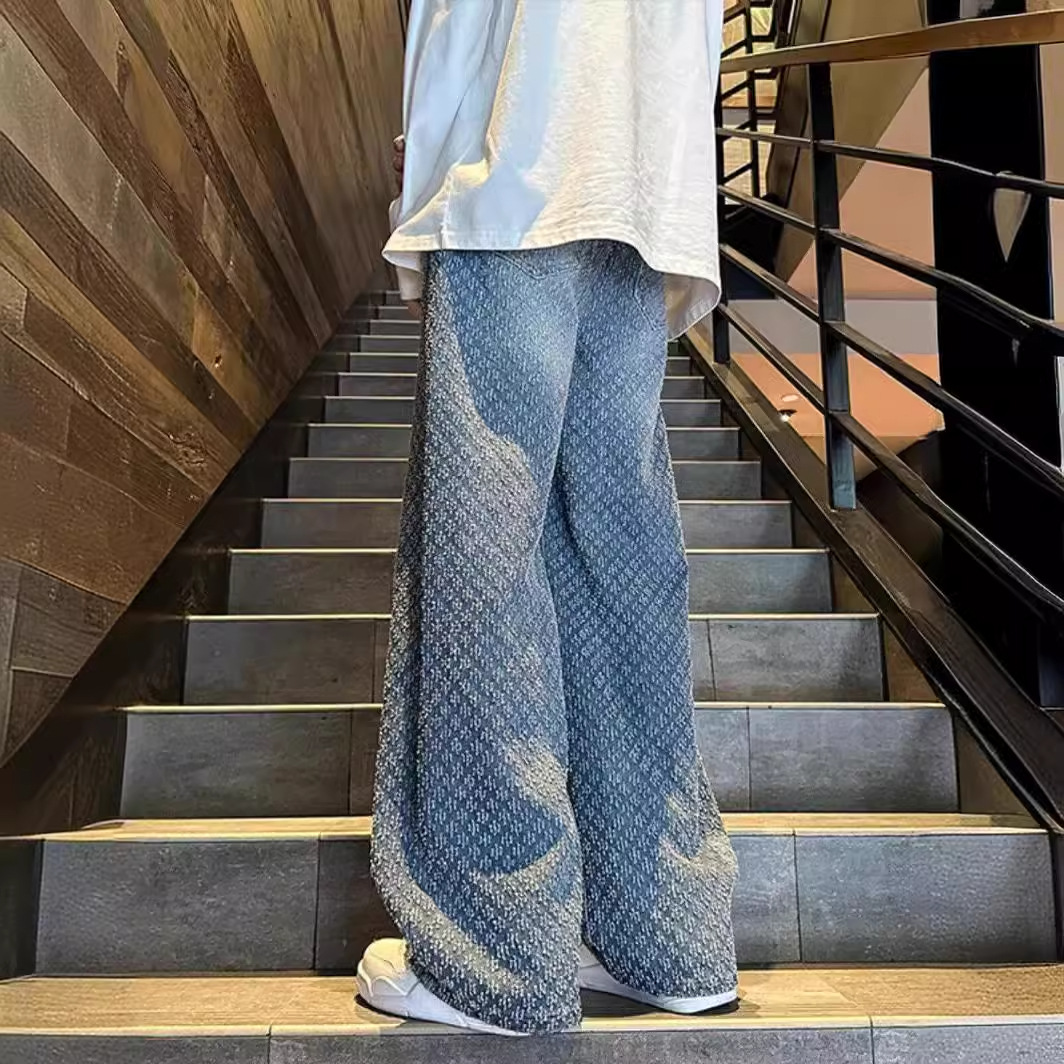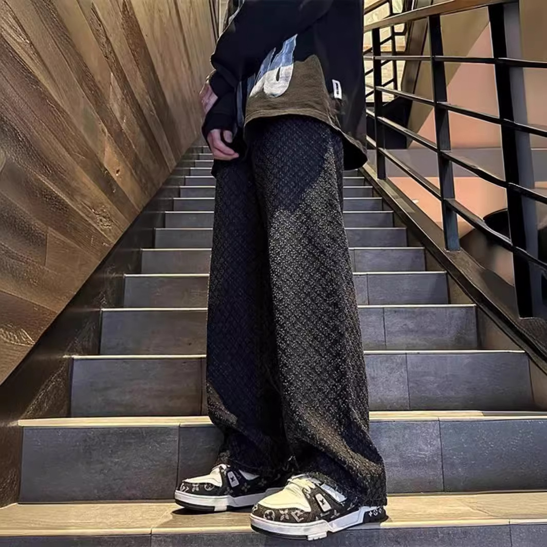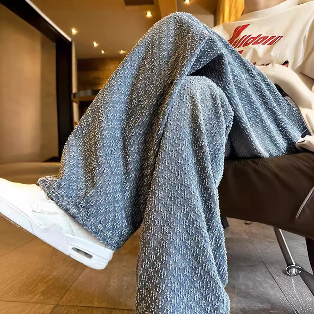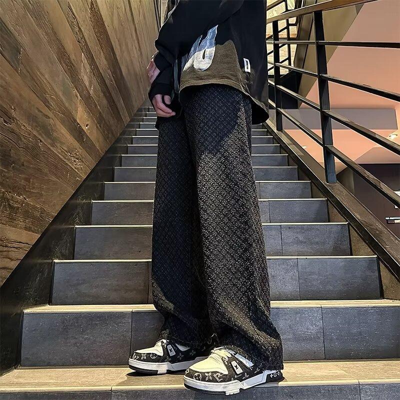 蓝色日系cityboy休闲裤男生夏季新款宽松潮牌百搭直筒阔腿长裤子