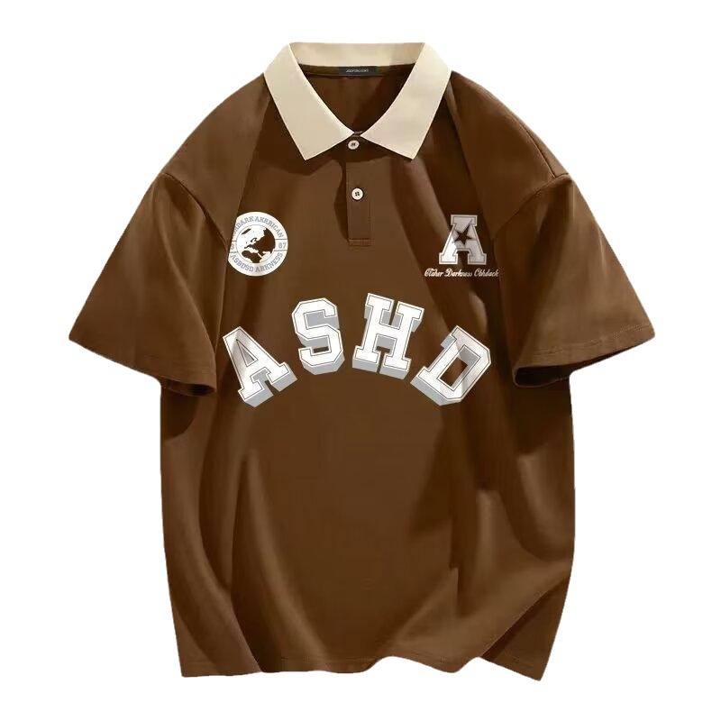 港风POLO领学院风短袖体恤男女情侣中性风休闲套头上衣宽松五分袖