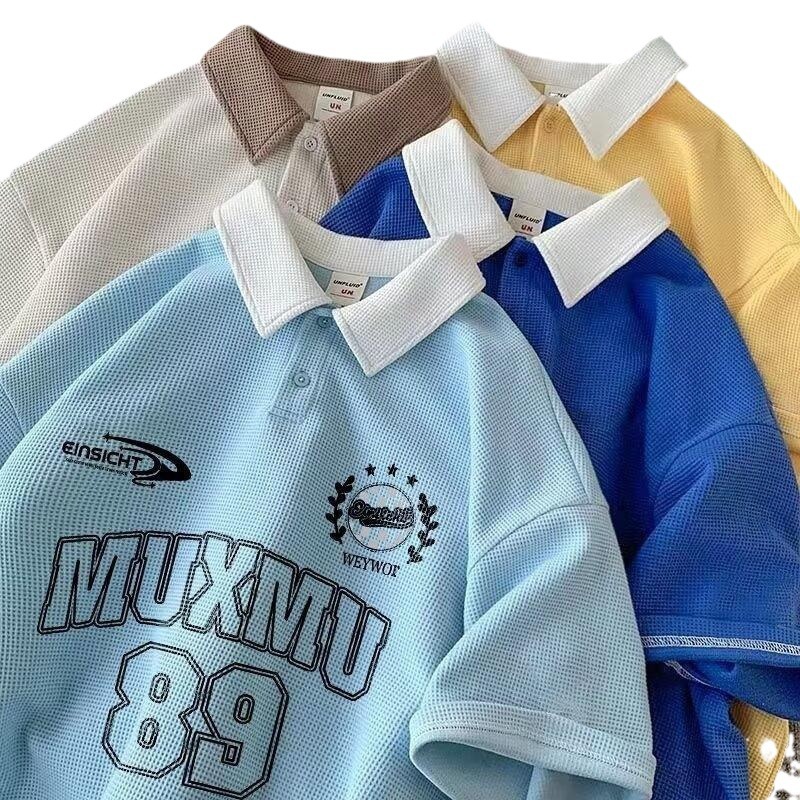 新款春夏季宽松polo衫短袖t恤男女同款学生情侣装打底衫上衣