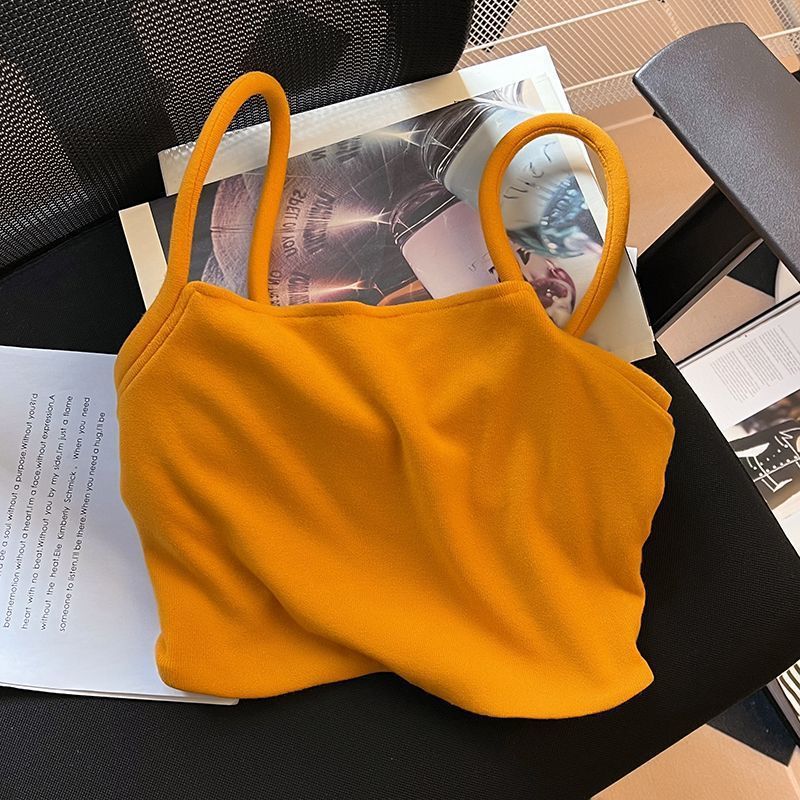 高级感橙色吊带背心女2025夏季新款小众性感别致纯欲短上衣女韩版