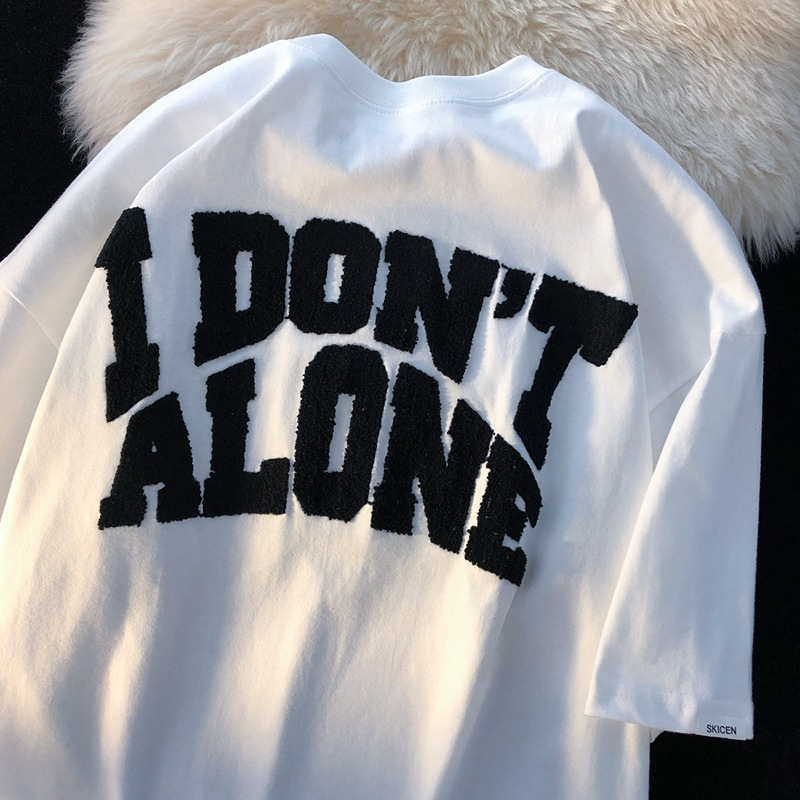 美式潮牌简约字母毛巾绣短袖T恤男女夏季甜酷风宽松情侣半袖上衣