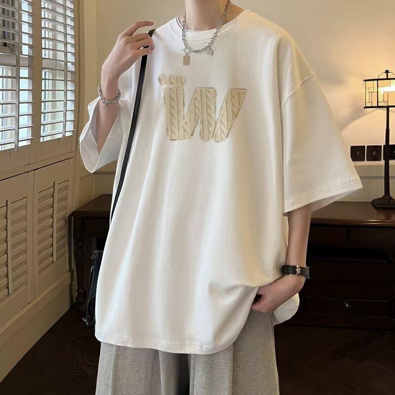 夏季新款字母印花短袖T恤男生韩版潮流百搭港风宽松圆领半袖上衣