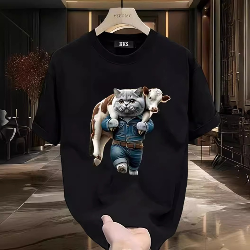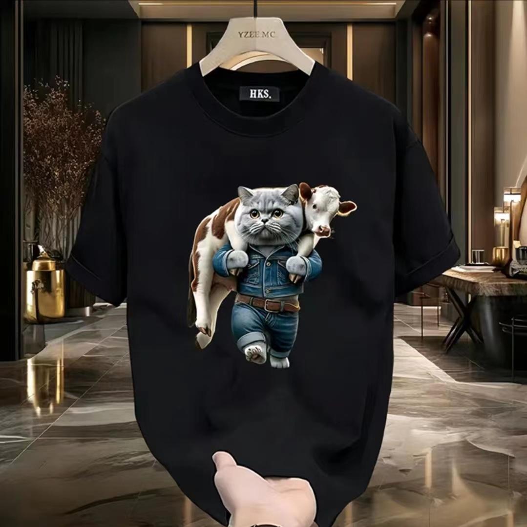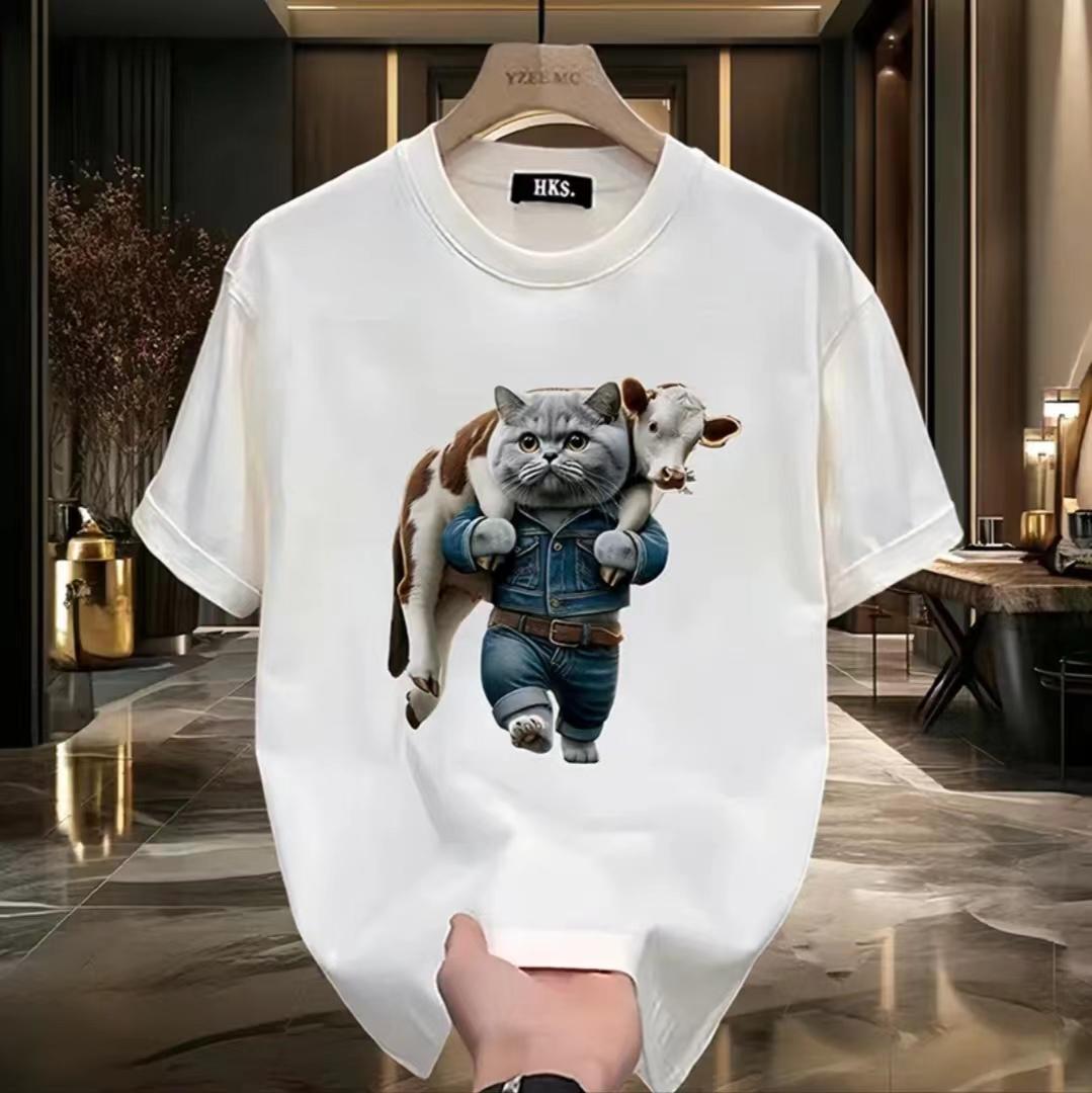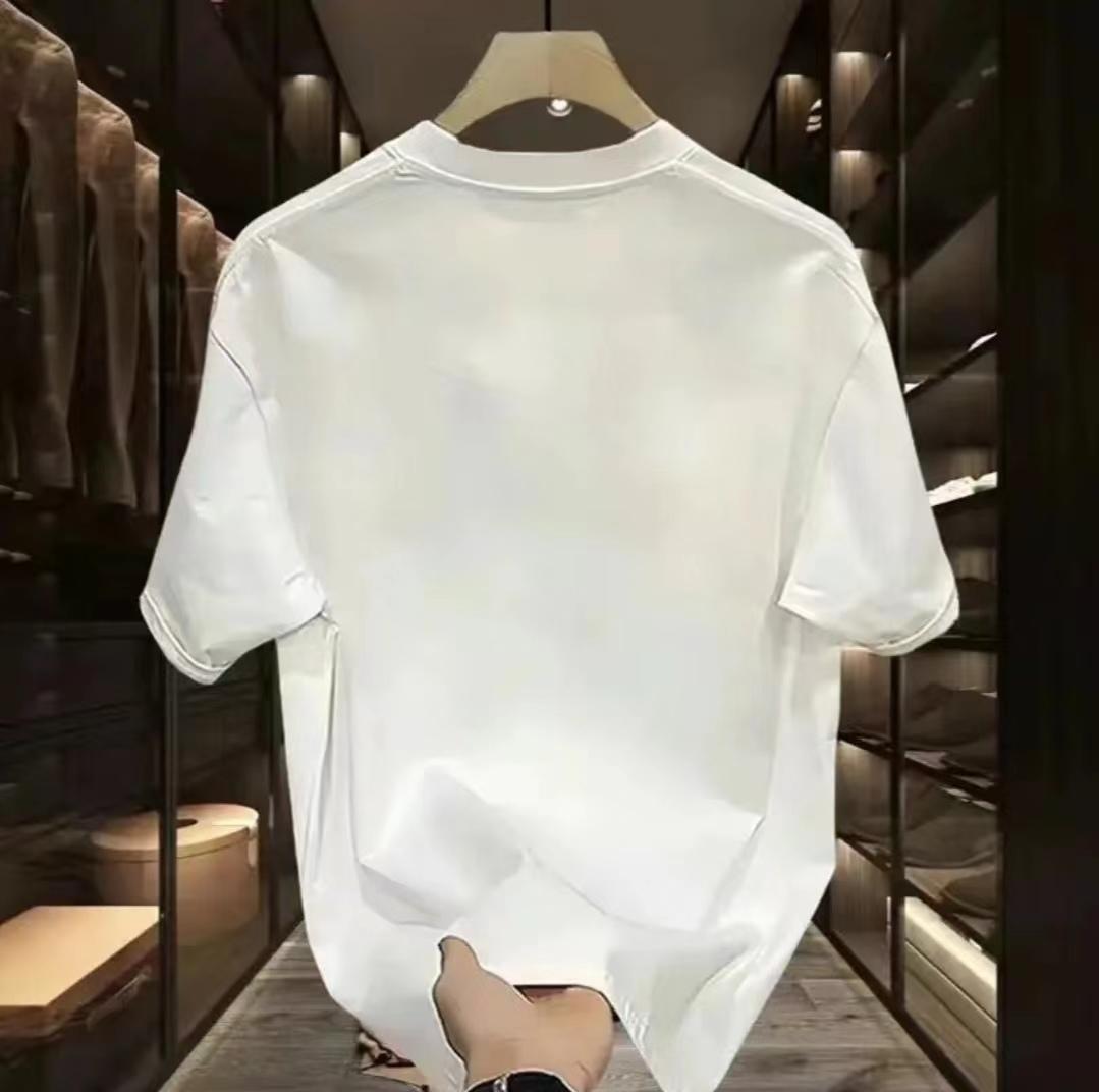 重磅短袖t恤男生夏季新款潮牌美式白色五分袖上衣宽松圆领体恤衫