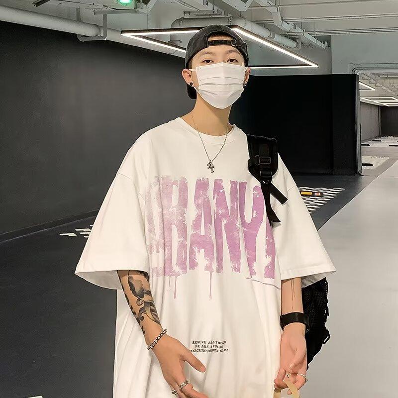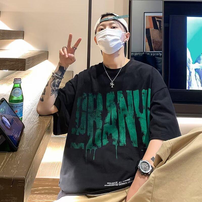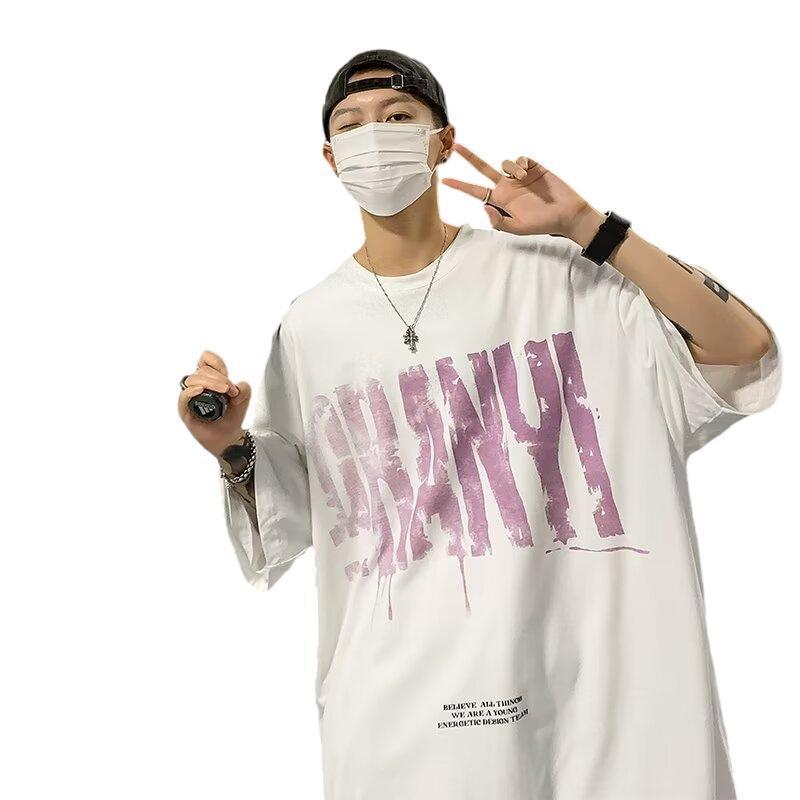 夏季新款美式潮牌字母印花短袖T恤男生ins潮牌宽松休闲半袖上衣服