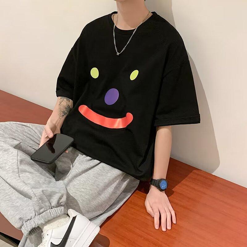 美式简约印花短袖t恤男夏季新款潮流时尚宽松百搭休闲半袖上衣服