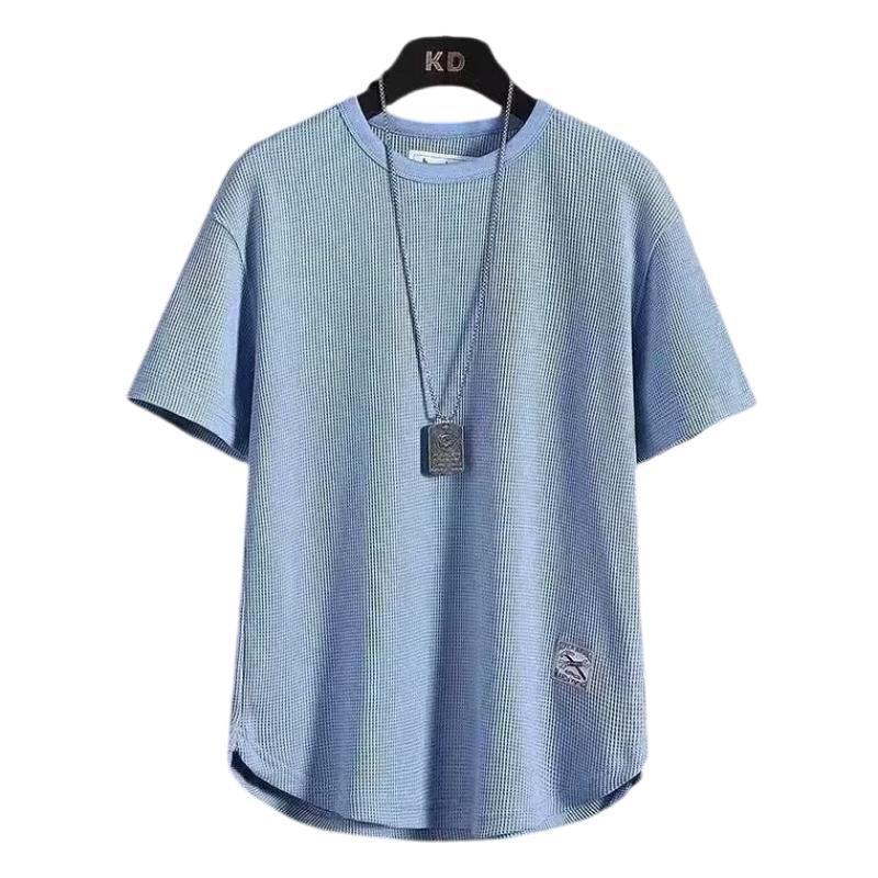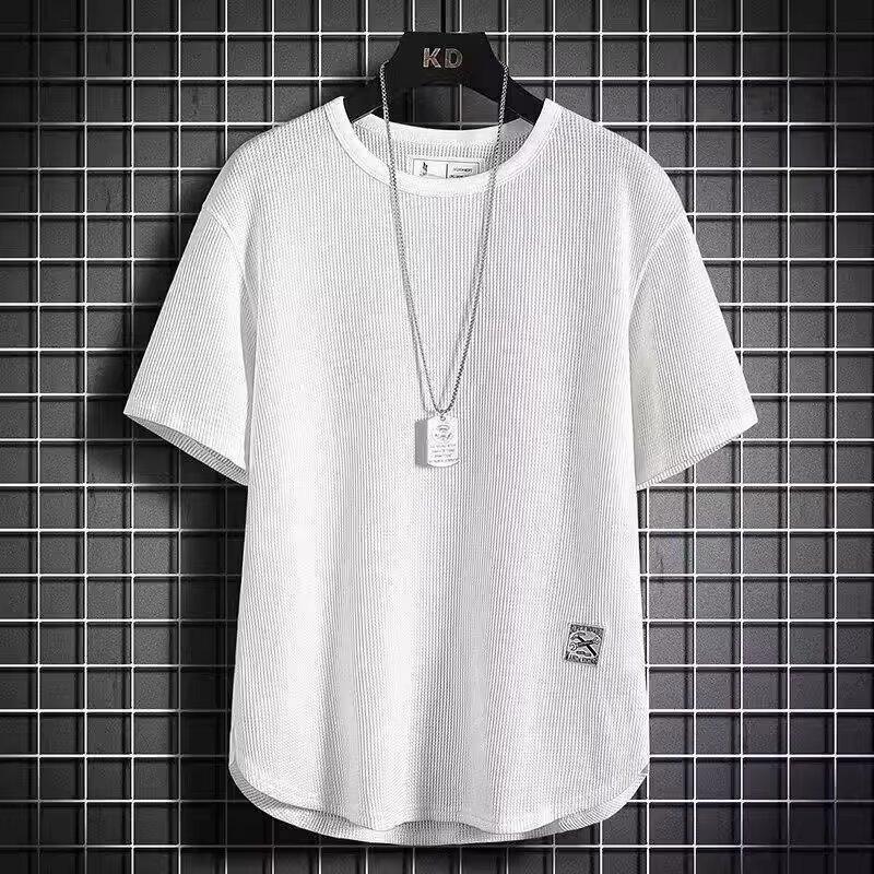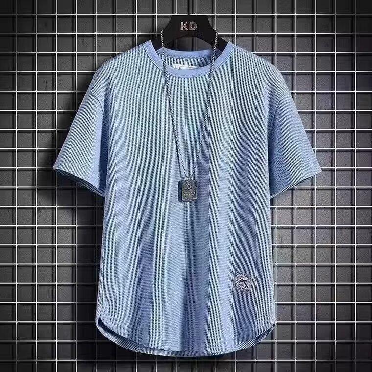 华夫格短袖t恤男生夏季年新款潮流宽松圆领半袖休闲风上衣服