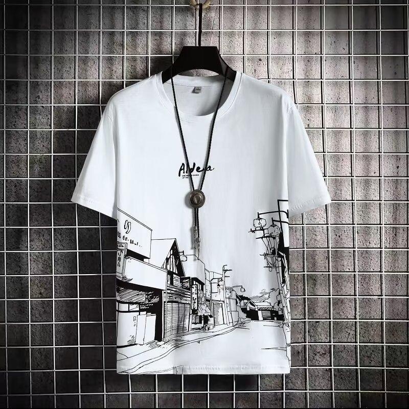 短袖t恤男生潮牌宽松五分袖T恤夏季新款潮流ins简约半袖上衣