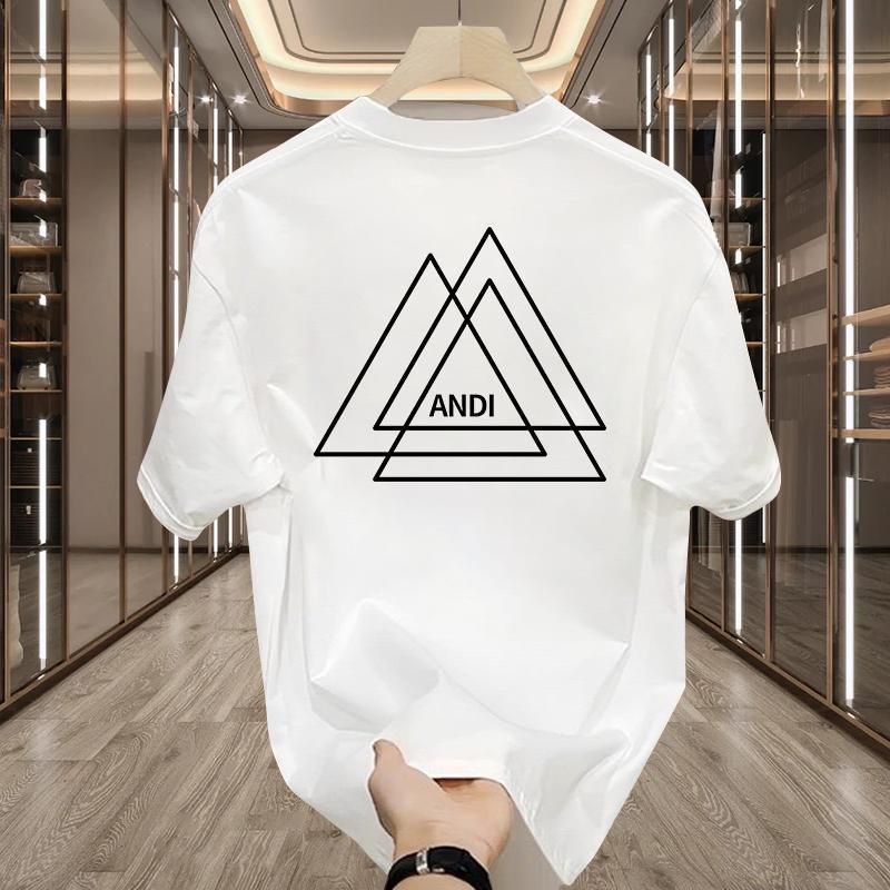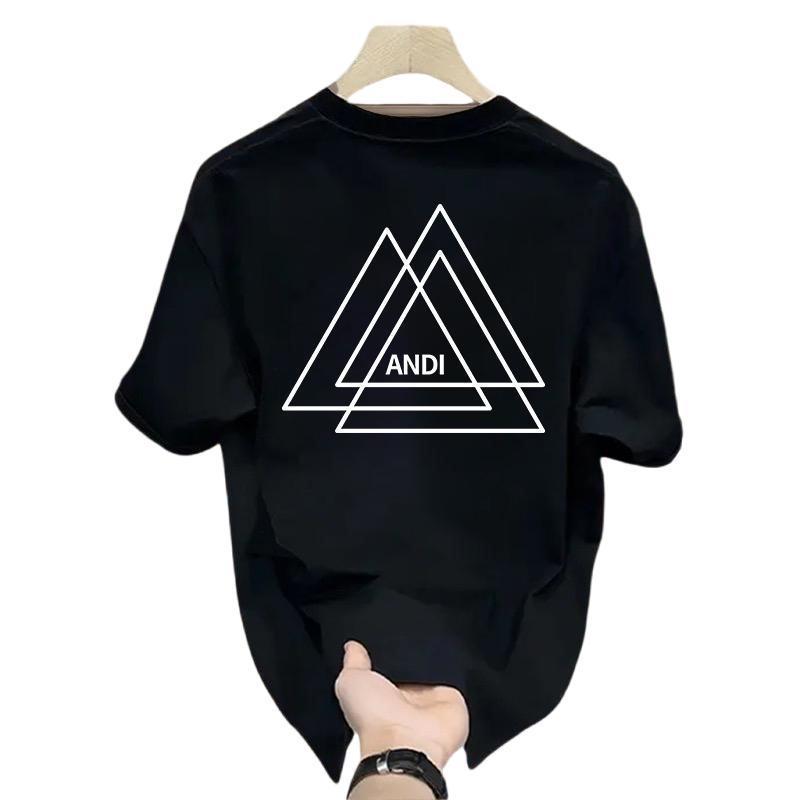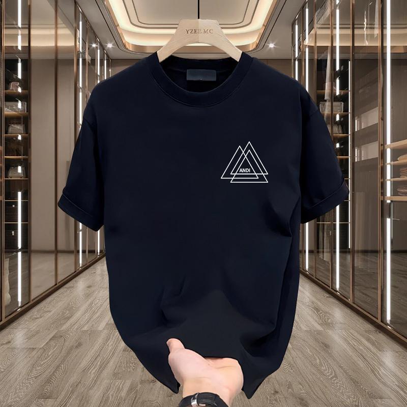 夏季国潮几何图案短袖t恤男士简约风百搭纯棉圆领半袖休闲体恤衫