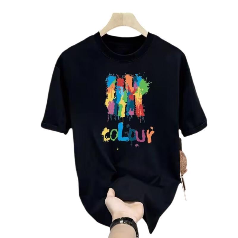 夏季新款涂鸦短袖t恤男ins黑色圆领短袖印花宽松港风痞帅半袖上衣