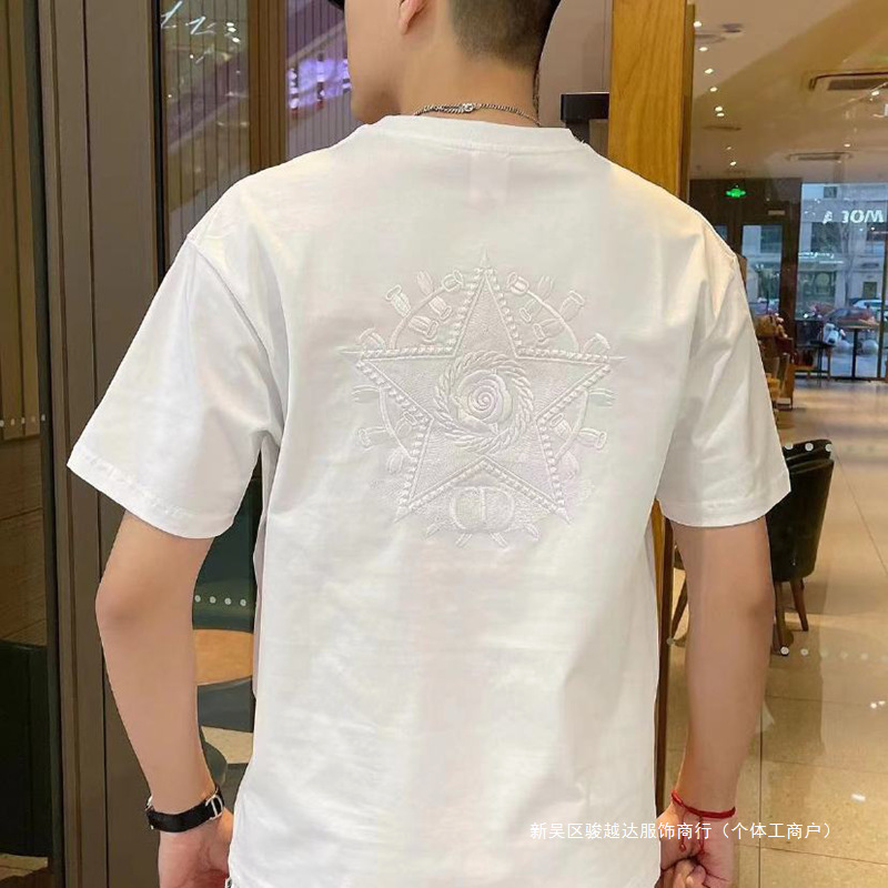 夏季新款刺绣圆领T恤男士韩版修身弹力半袖ins百搭休闲短袖男上衣