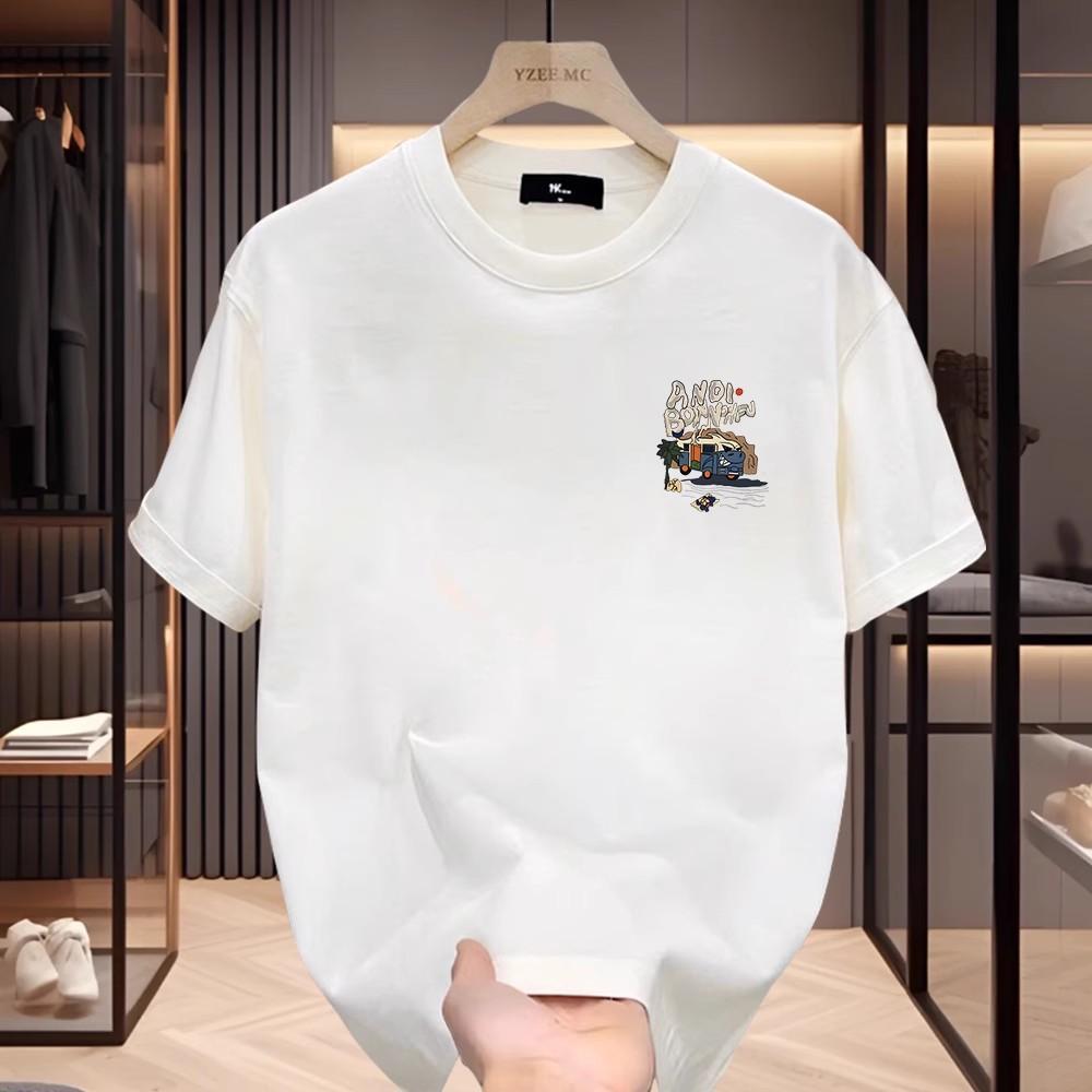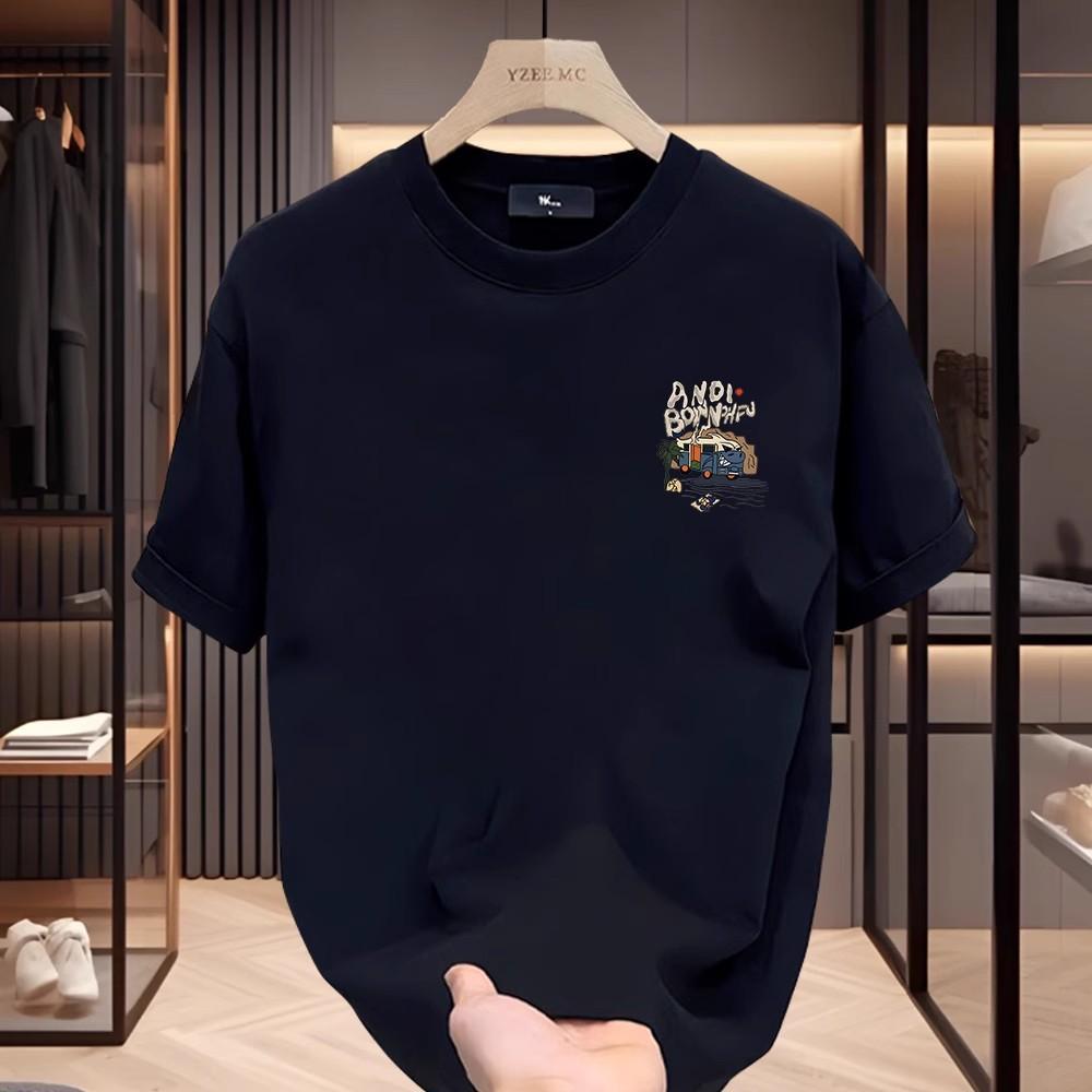 高端潮牌男生休闲纯棉上衣夏季新款高级百搭时尚宽松半袖圆领T恤