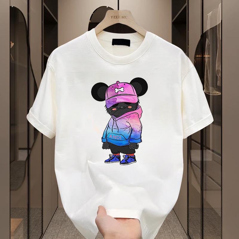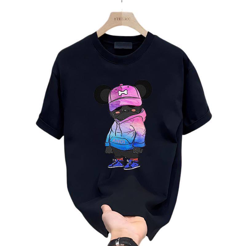 男女同款时尚卡通小熊彩色印花短袖t恤夏季新款潮流宽松短袖上衣