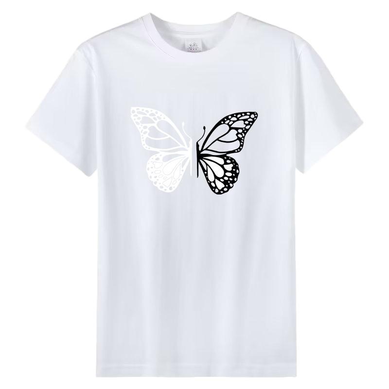 夏季新款vintage美式复古白色短袖t恤男街头潮流蝴蝶印花半袖上衣