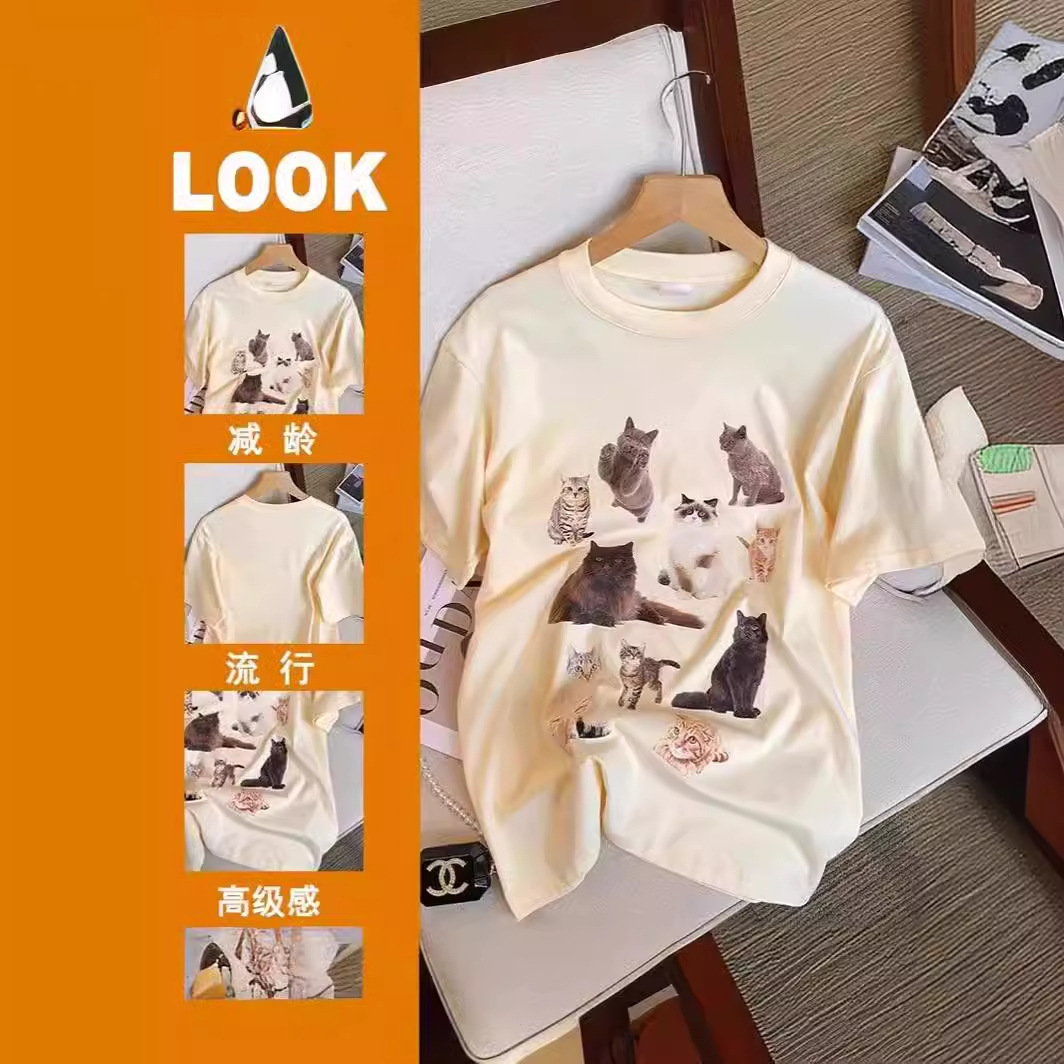 猫咪的聚会 猫猫印花短袖情侣款小众潮流宽松休闲情侣纯棉百搭T恤