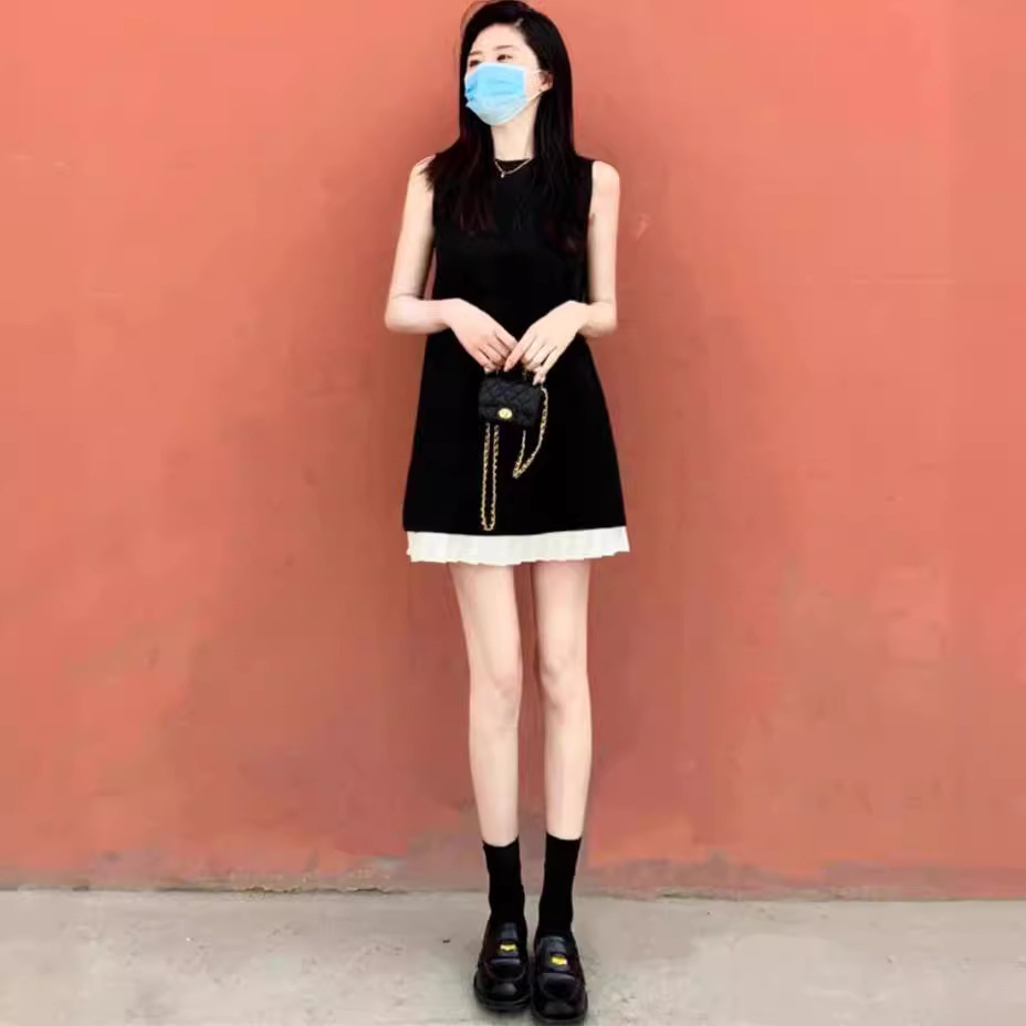 法式赫本风小黑裙夏季新款小个子显高精致黑色背心无袖连衣裙