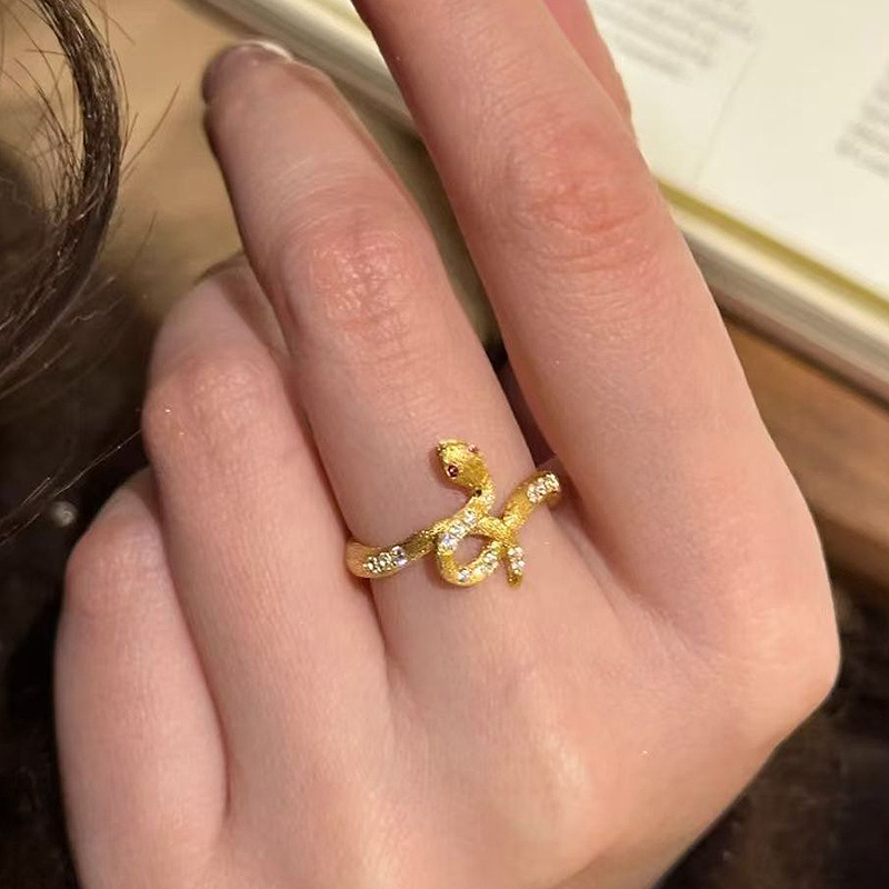 小红书爆款古法拉丝红眼小金蛇戒指女2025新款本命年蛇形微镶指环