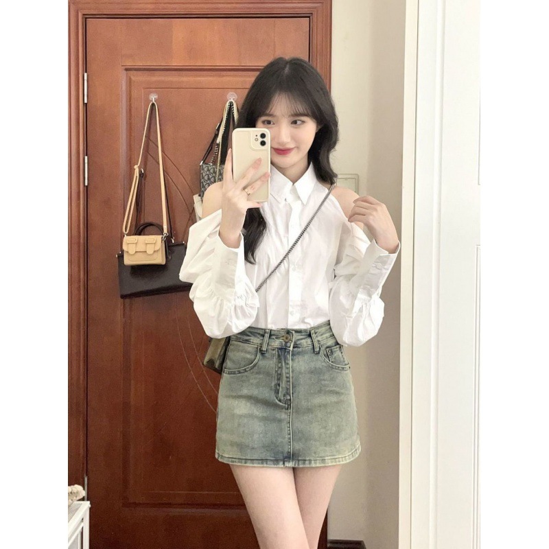 复古牛仔半身裙女新款裙子半裙高腰紧身小个子防走光A字包臀短裙