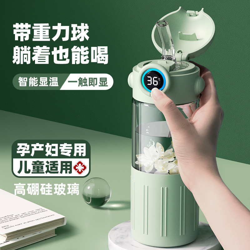 智能吸管玻璃水杯子女孕妇产妇专用新款耐热防爆耐高温刻度高颜值