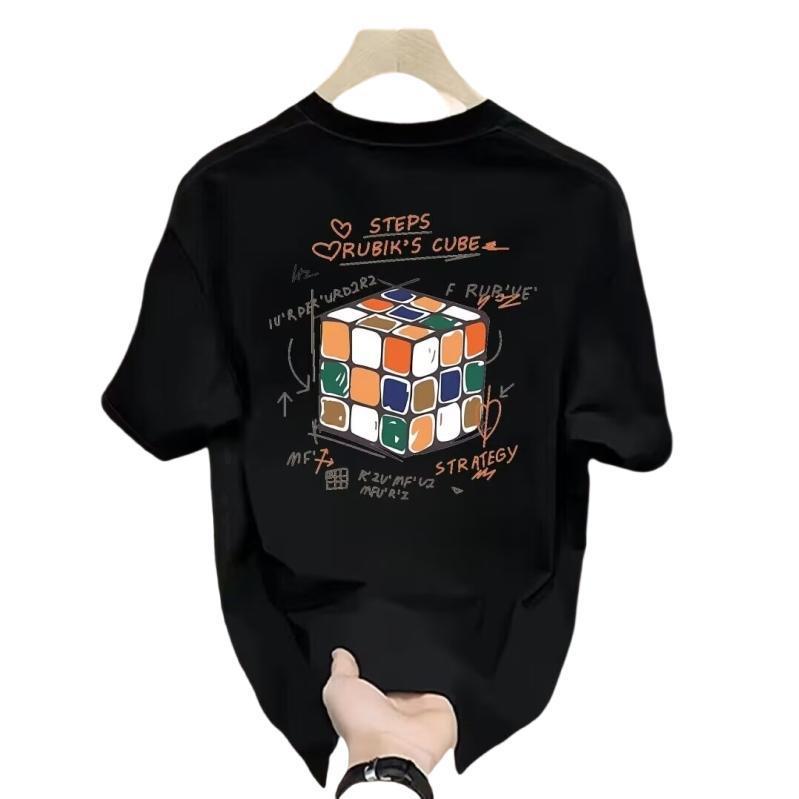 魔方印花短袖T恤男生夏季时尚百搭痞帅显瘦纯棉圆领半袖休闲上衣