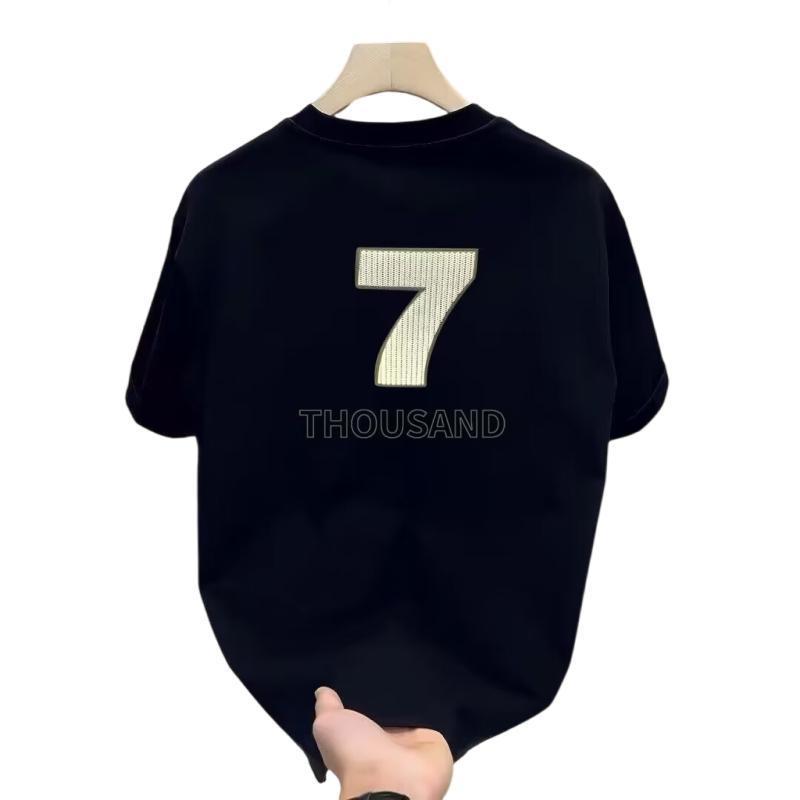 国潮痞帅数字7T恤夏季新款男生韩版白色潮牌半袖个性情侣短袖上衣