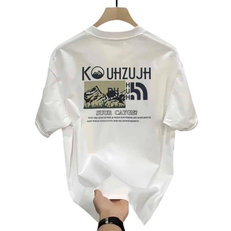 夏季新款创意设计纯棉T恤男士潮牌宽松百搭圆领白色休闲短袖上衣