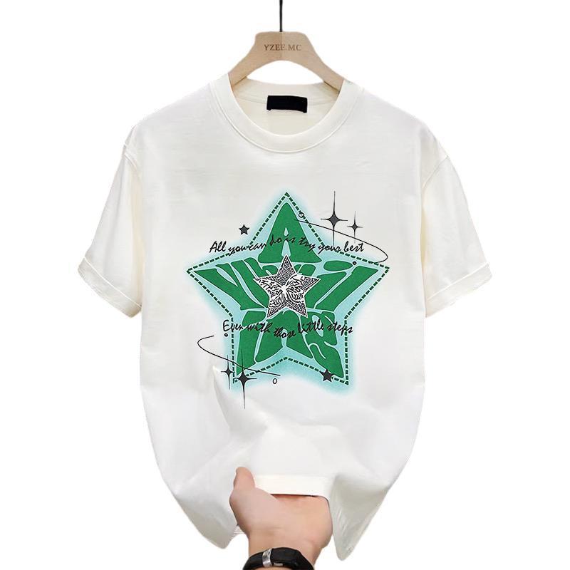 潮牌夏季新款宽松简约百搭纯棉短袖T恤男士时尚百搭1休闲半袖上衣