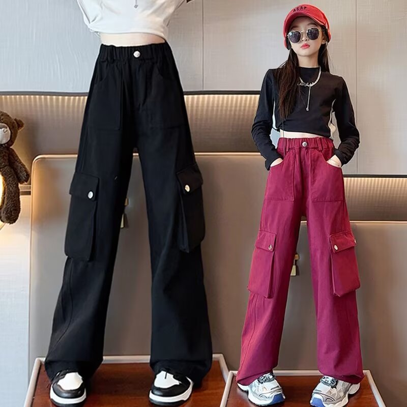 女童休闲裤春秋季运动裤新款时髦女孩中大童工装裤宽松潮裤子