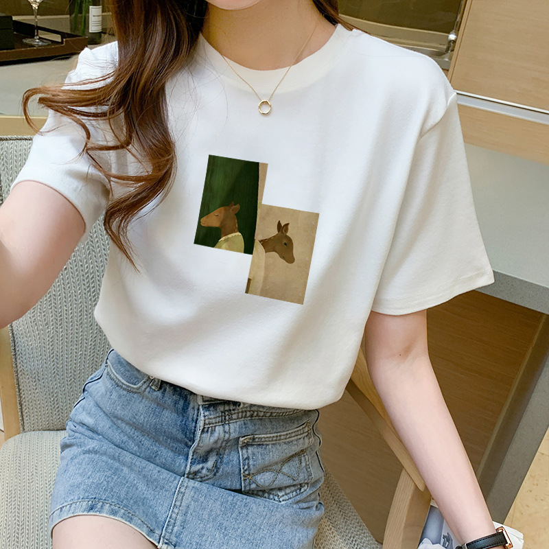 t恤女夏季新款白色卡通短袖宽松纯棉半袖小众设计感百搭上衣