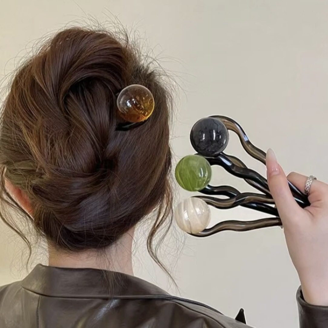 新款高端椰椰冻圆珠~复古简约珠珠u型发簪