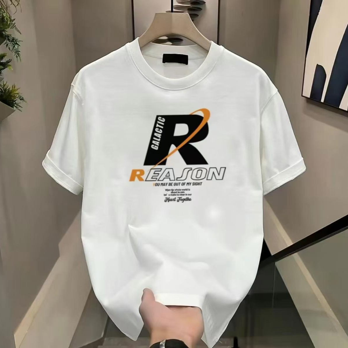 纯棉短袖T恤男士夏季新款潮流字母印花时尚百搭休闲半袖圆领上衣