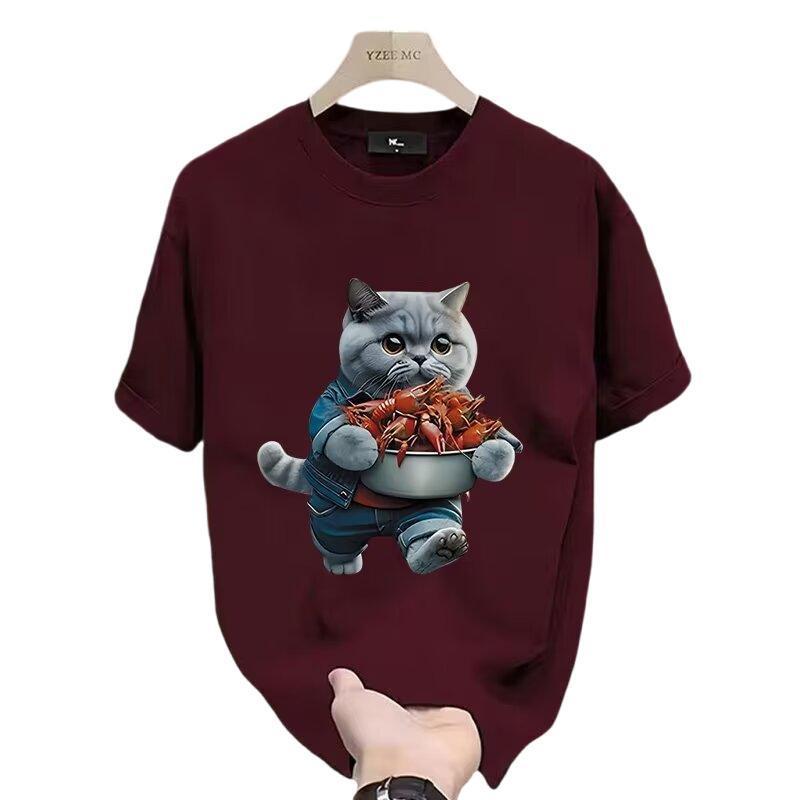 短袖t恤男士夏季新款潮牌宽松短袖潮流ins简约印花圆领半袖上衣服