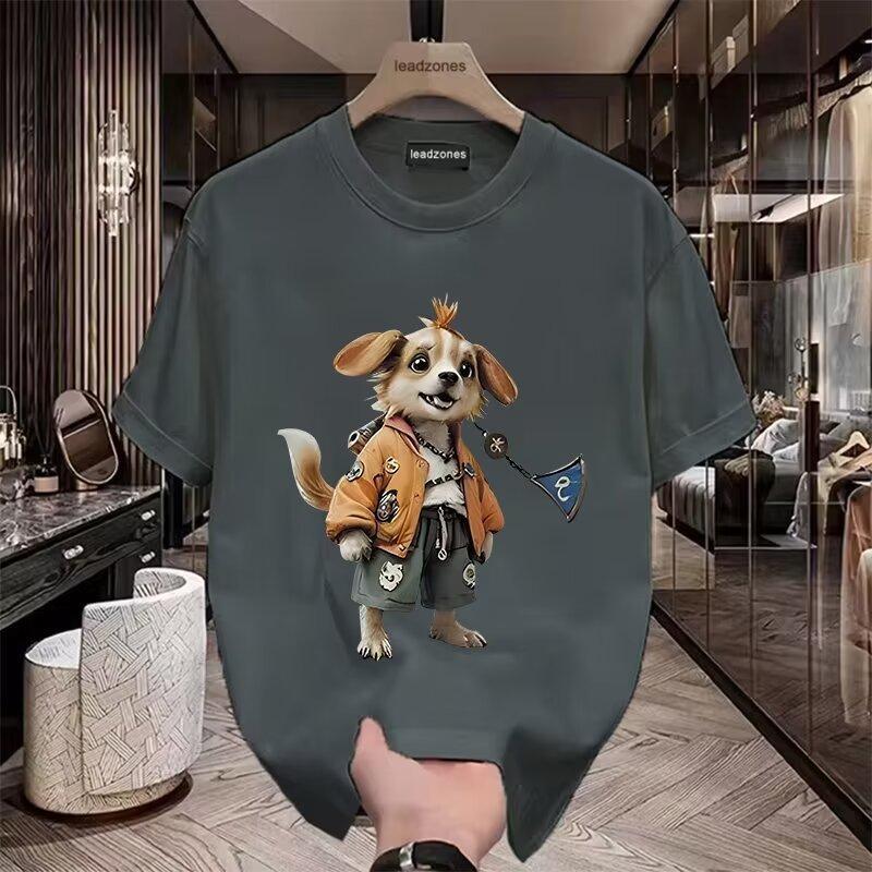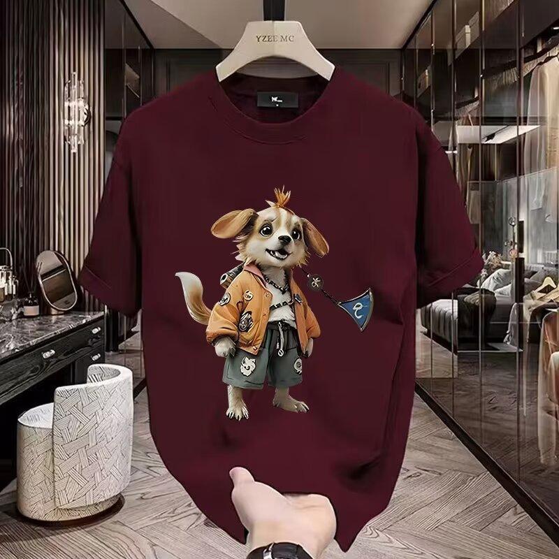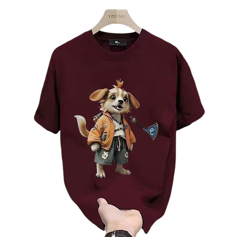夏季新款美式潮牌狗狗印花短袖T恤男士夏季ins潮牌宽松休闲上衣服