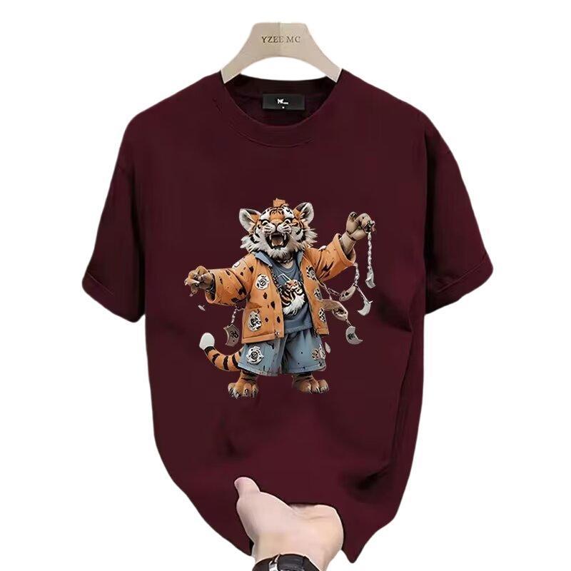夏季新款短袖T恤男士百搭宽松个性印花ins时尚休闲圆领半袖上衣服