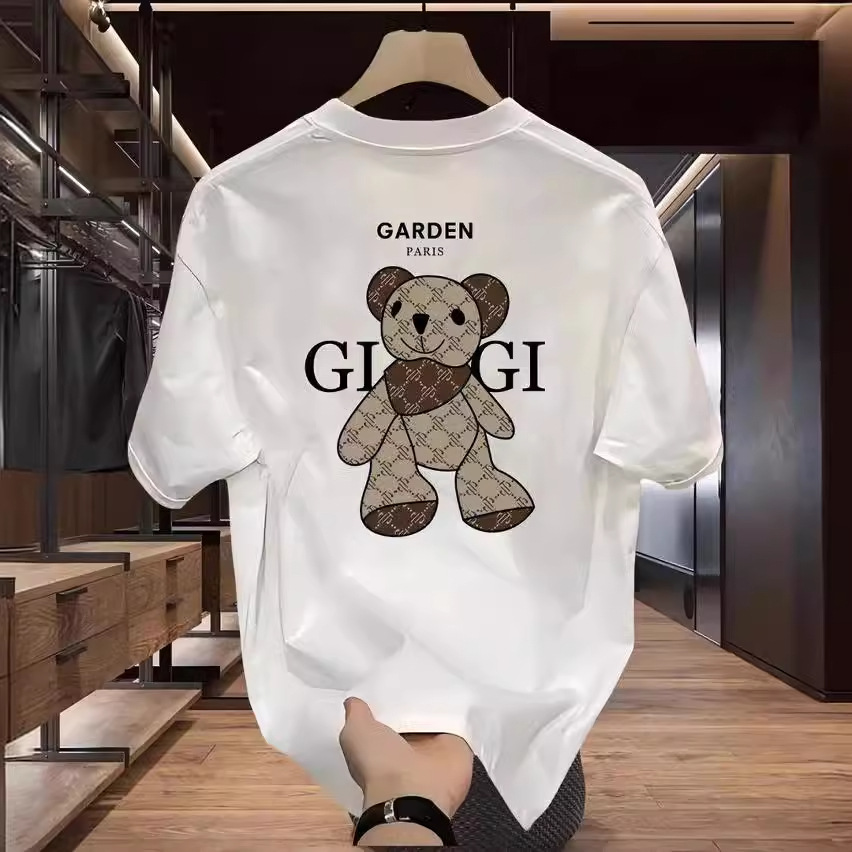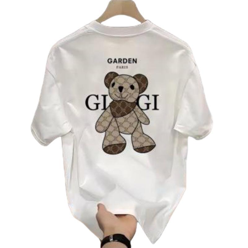 夏季新款创意小熊印花短袖T恤男女夏季潮牌百搭纯棉半袖圆领上衣
