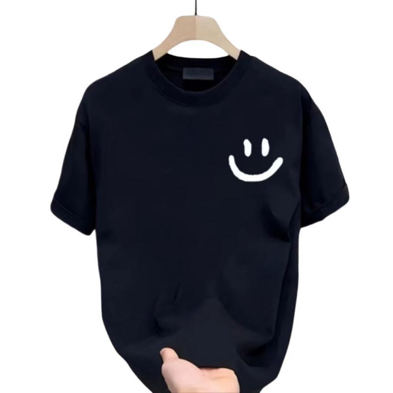 纯棉时尚百搭T恤男士高端潮牌夏季情侣款上衣笑脸印花高级百搭T恤