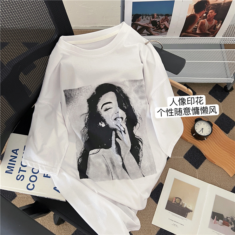欧美潮流复古人像印花圆领中长款短袖T恤情侣装高街原宿风上衣夏