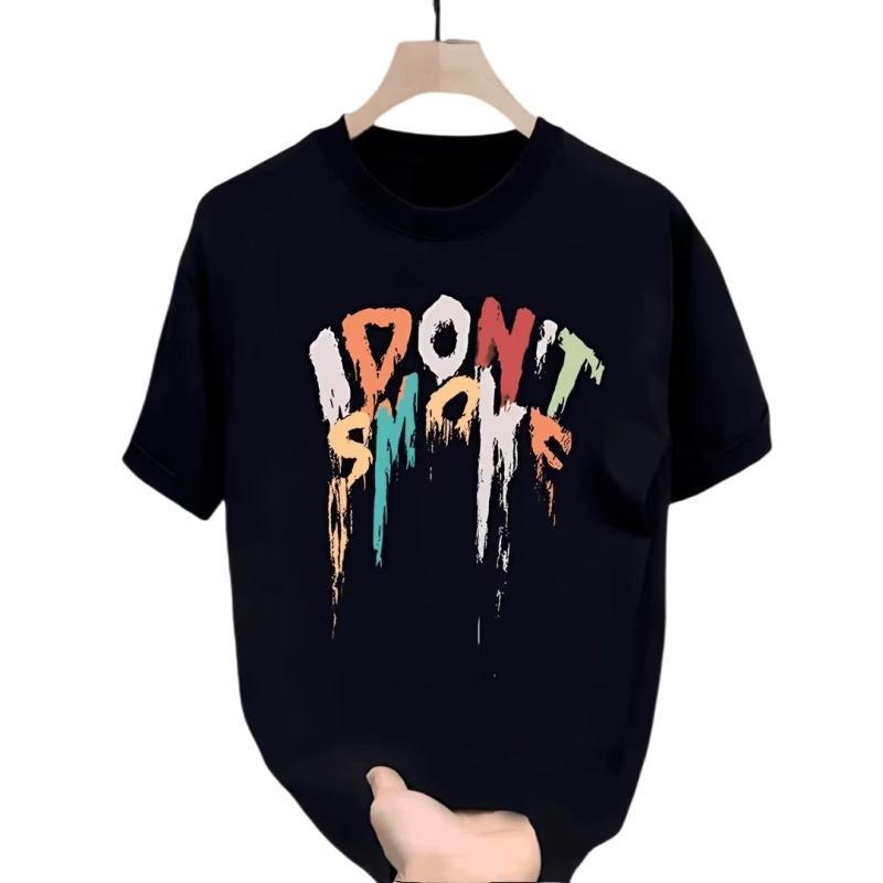 纯棉美式街头彩色字母涂鸦趣味宽松百搭时尚个性圆领休闲短袖上衣