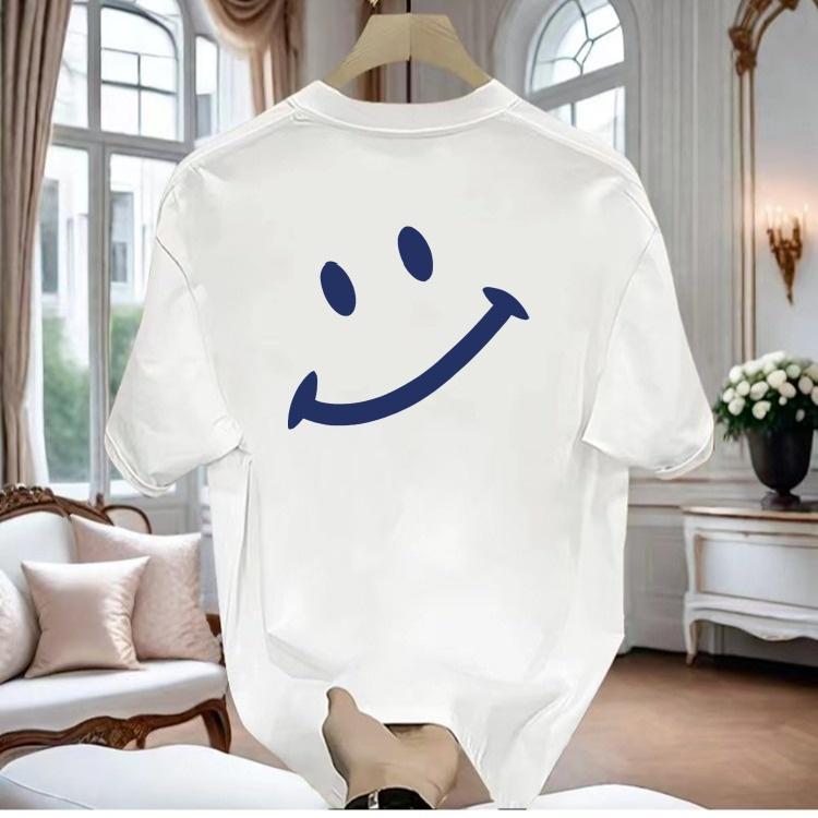 纯棉潮流笑脸印花休闲短袖T恤男士夏季宽松百搭时尚圆领半袖上衣