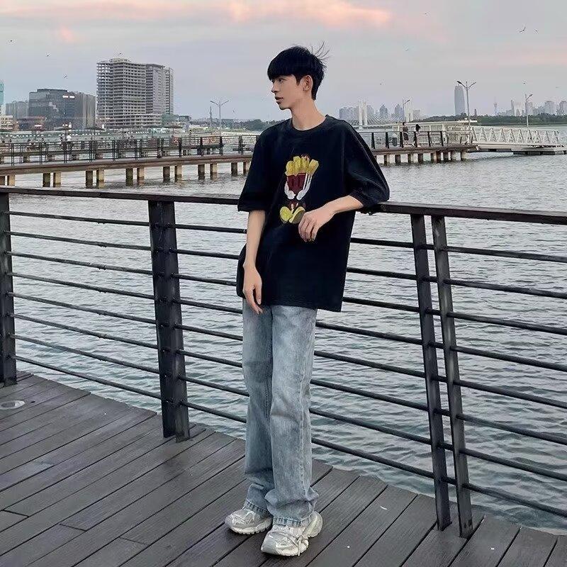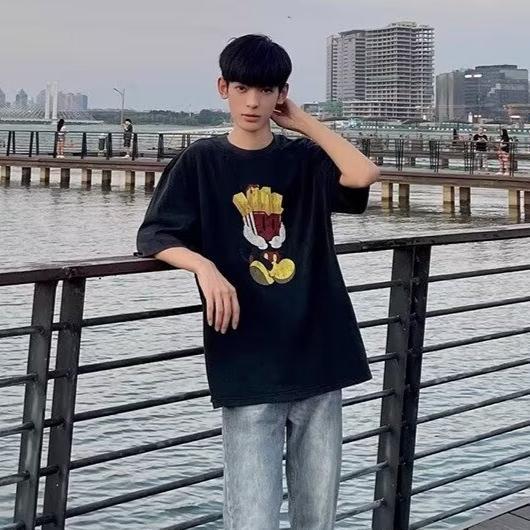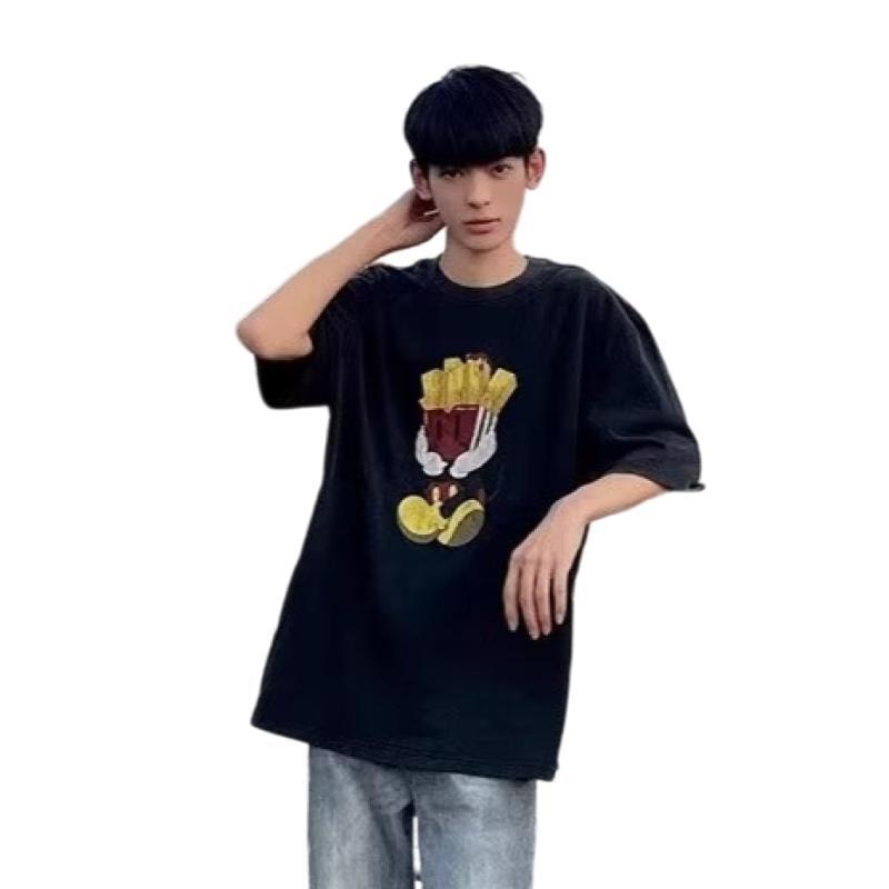 美式复古t恤短袖男生夏季新款卡通印花潮牌宽松休闲情侣半袖上衣