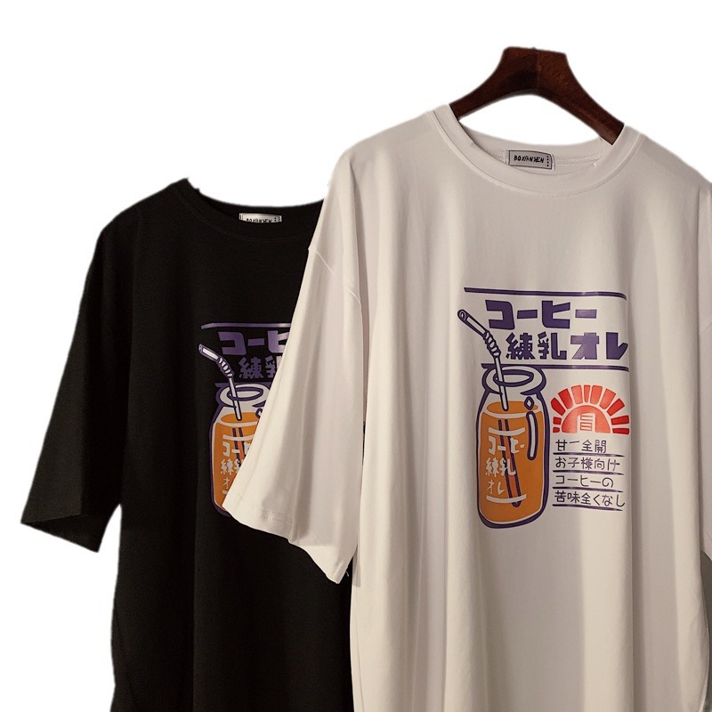 夏季原宿风男士印花五分袖短袖T恤情侣上衣服圆领宽松半袖打底衫