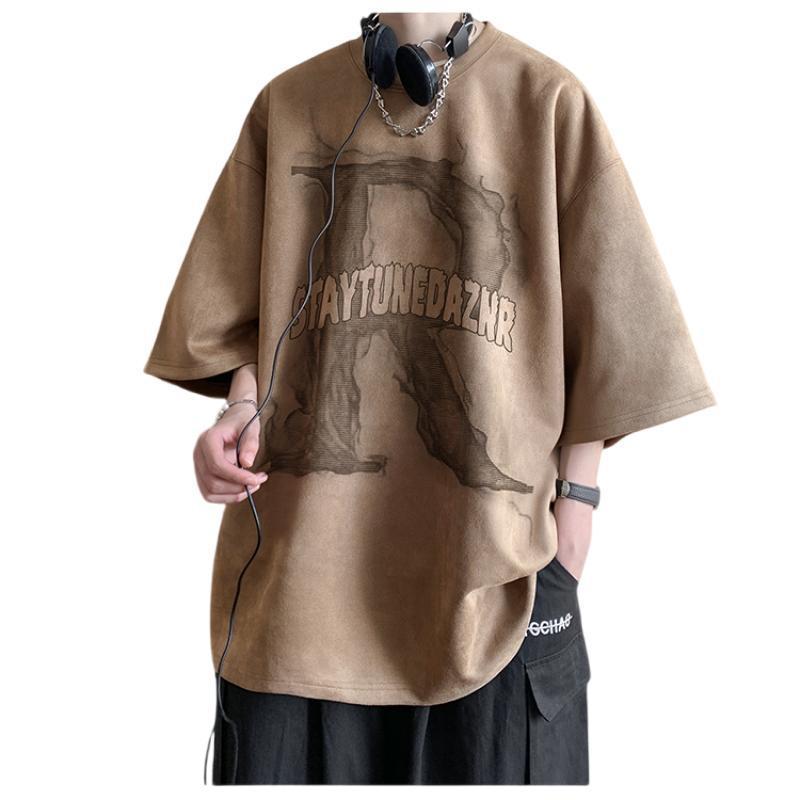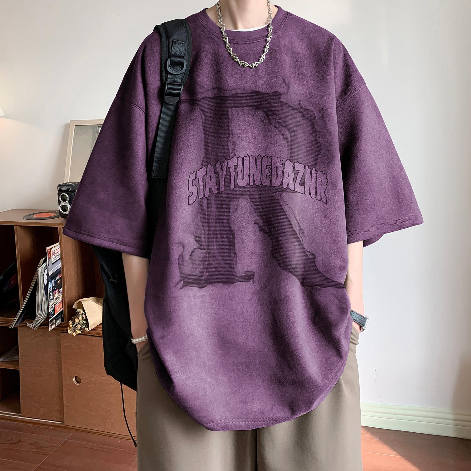重磅短袖T恤男生夏季新款薄款字母印花美式时尚百搭半袖圆领上衣