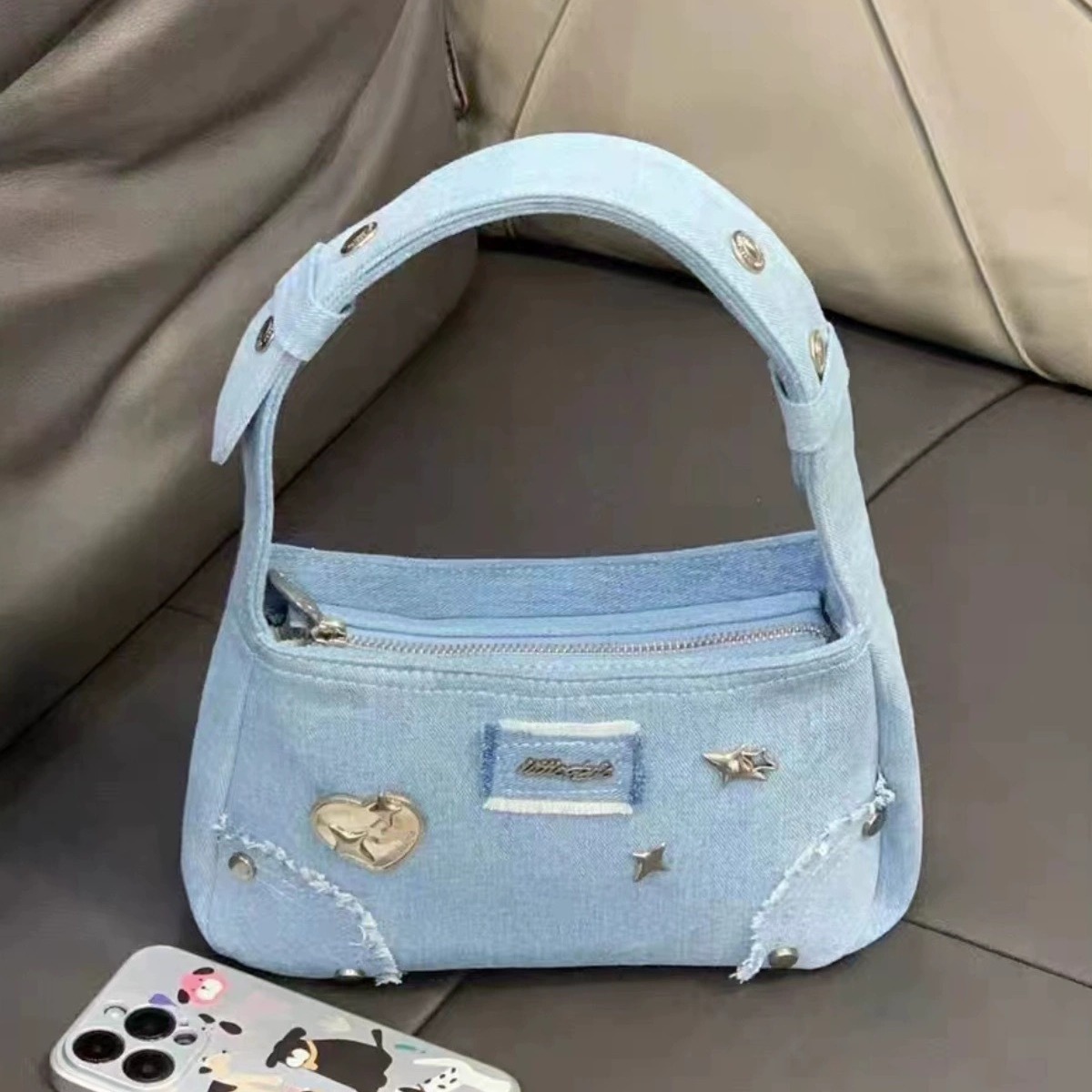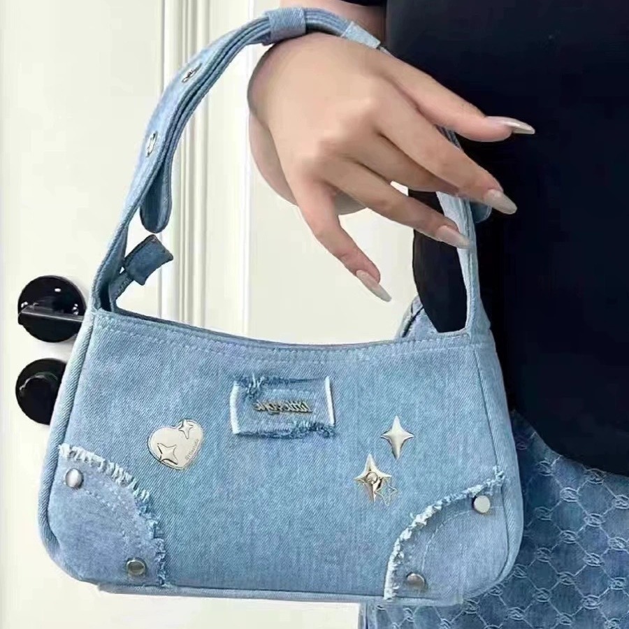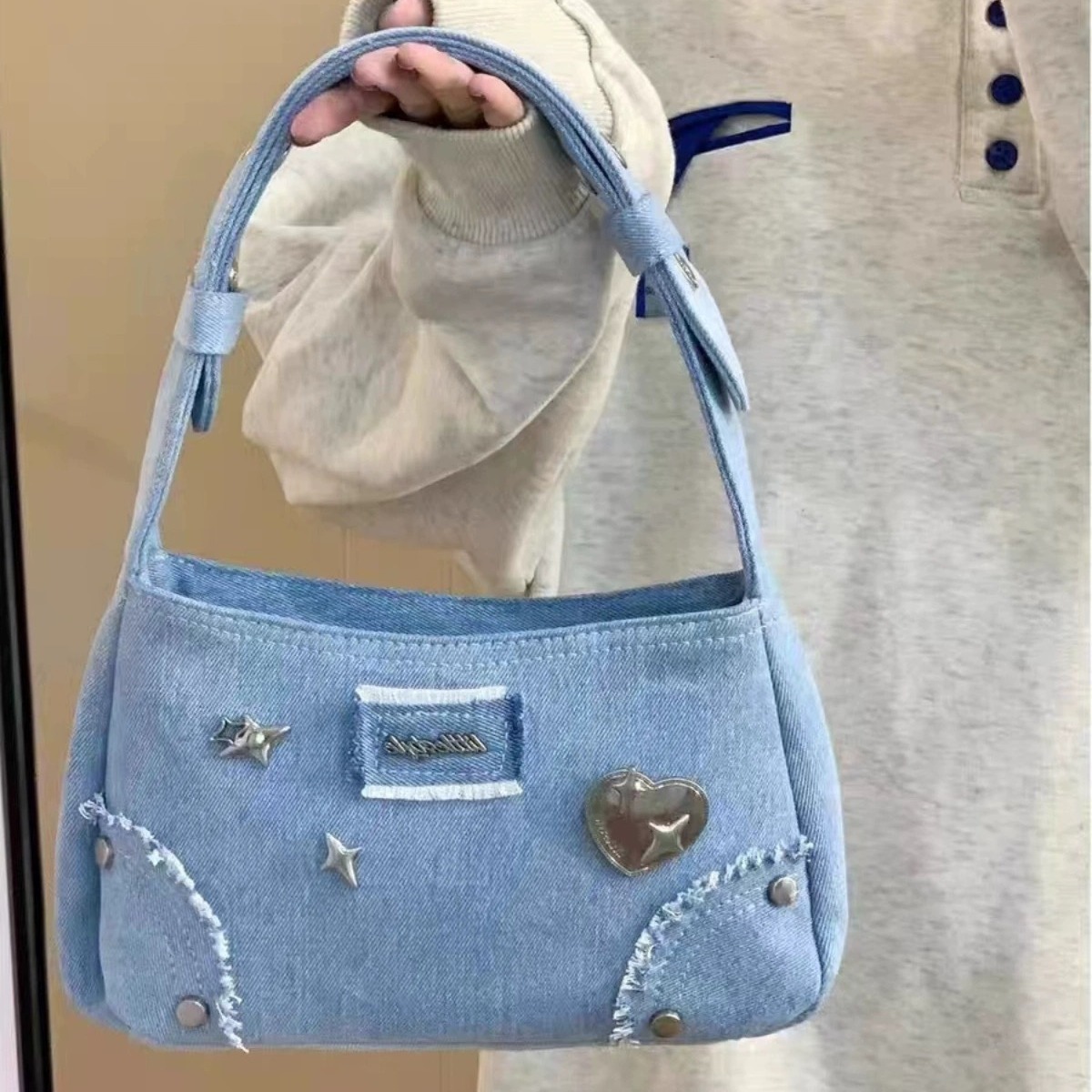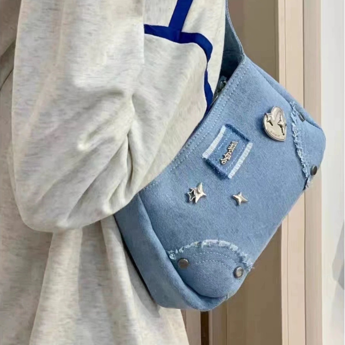 手提小包夏季新款金属星星牛仔小方包腋下包潮牌