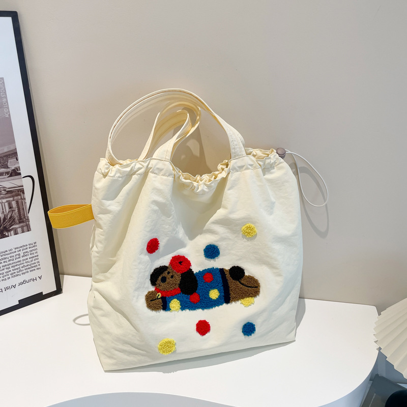 可爱毛绒小狗慵懒风设计感帆布包大容量大学生上课包松弛感通勤包