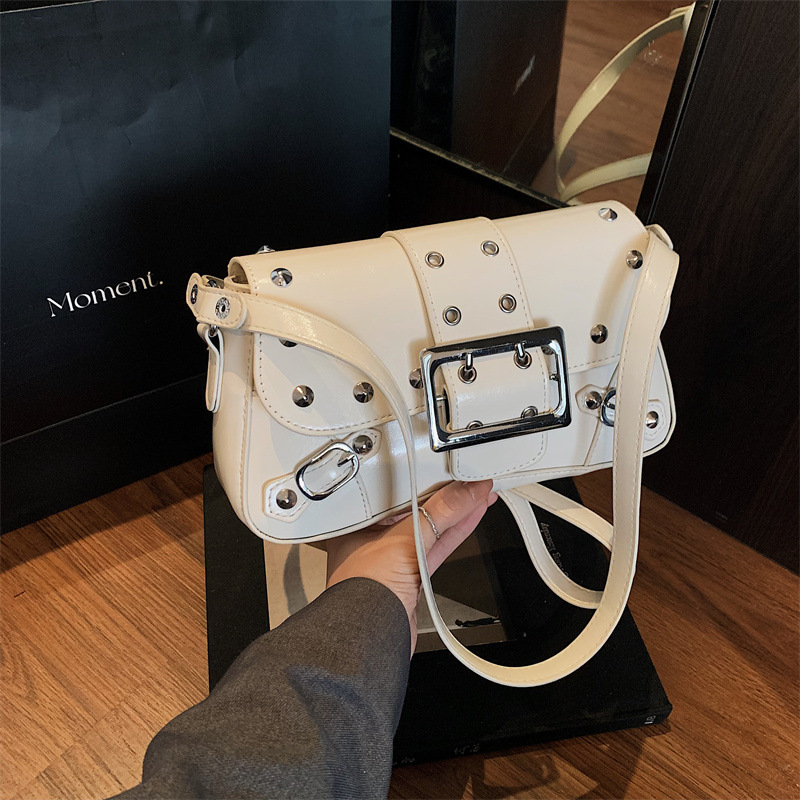 外贸女包2025新款时尚洋气简约休闲百搭纯色机车包手拎单肩腋下包