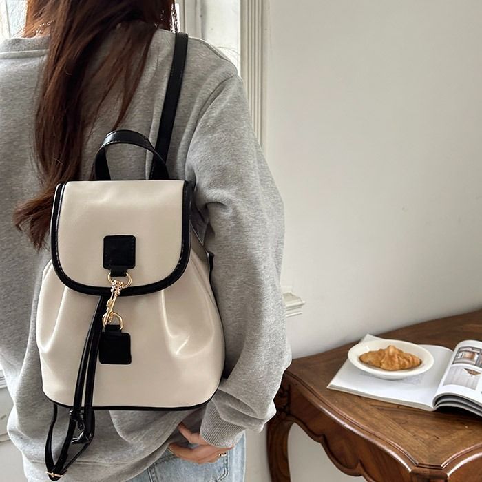 小香风双肩包女新款包包撞色时尚休闲简约翻盖百搭小背包学生