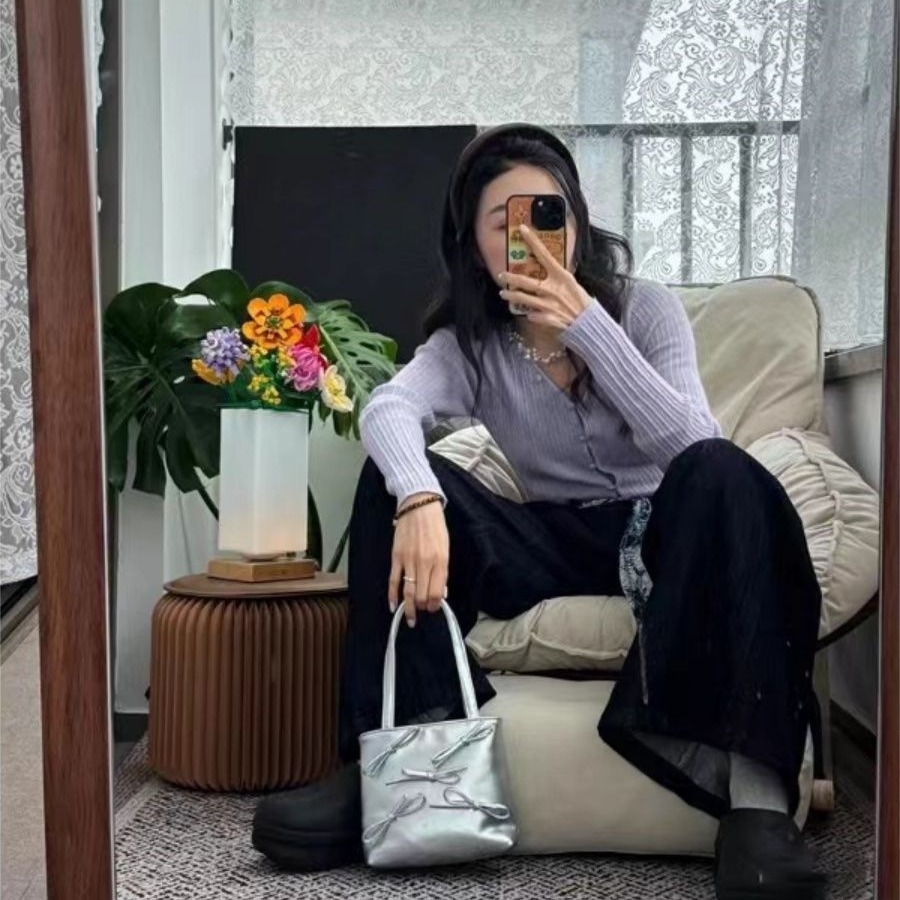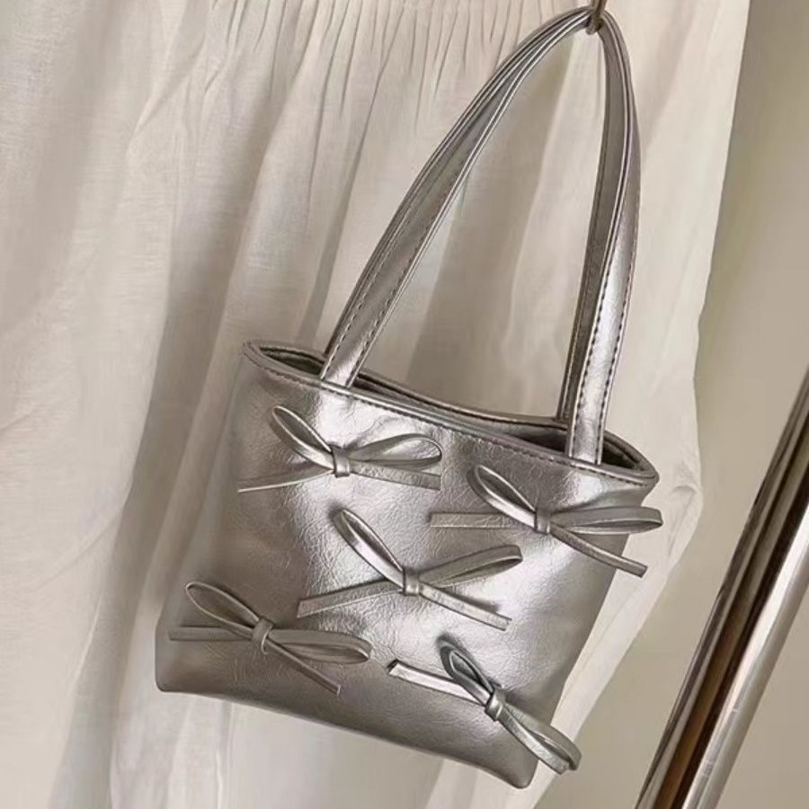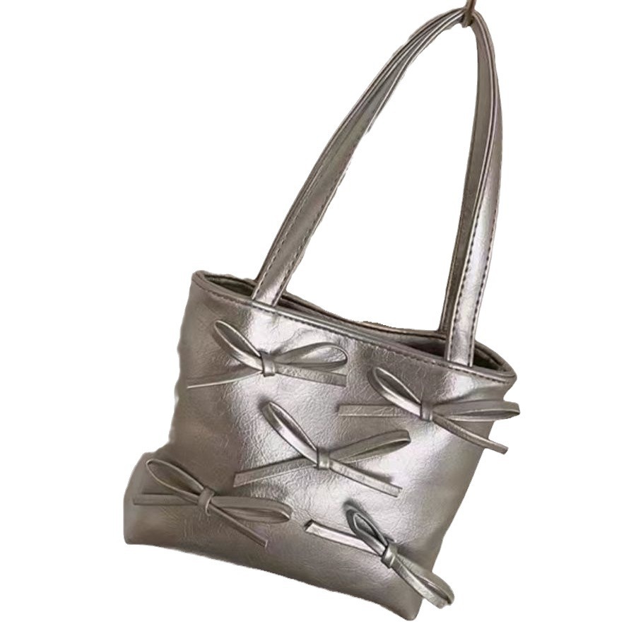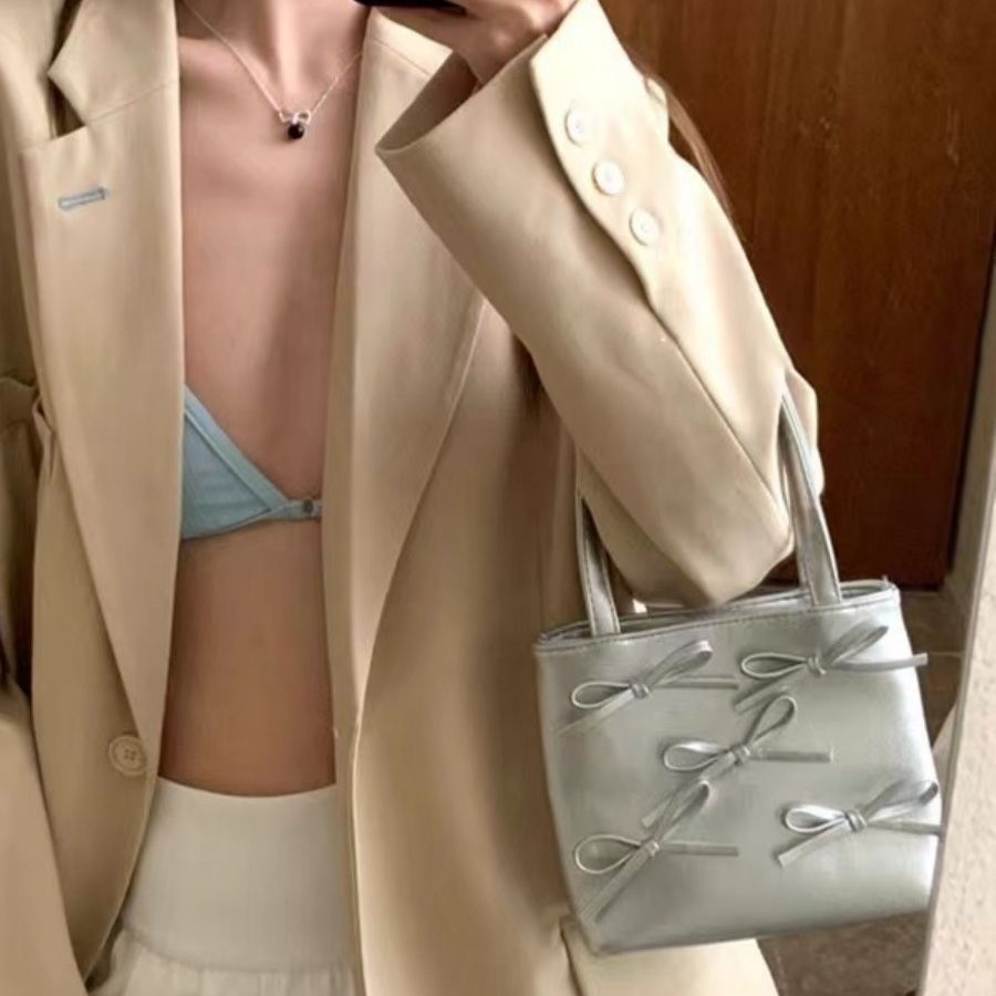 新款简约时尚女韩系小众休闲蝴蝶结小方包高级质感腋下包